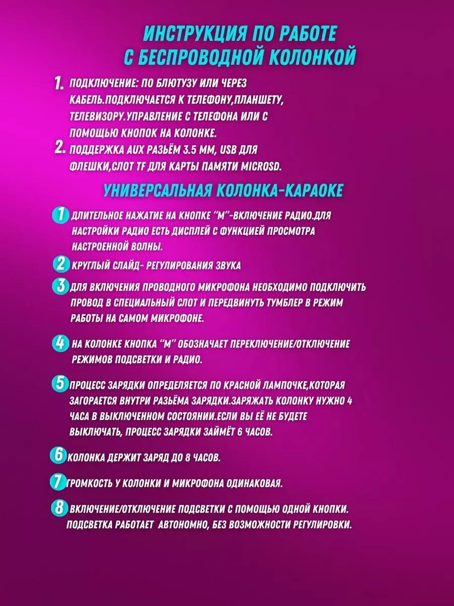 Колонка беспроводная с микрофоном караоке информация: