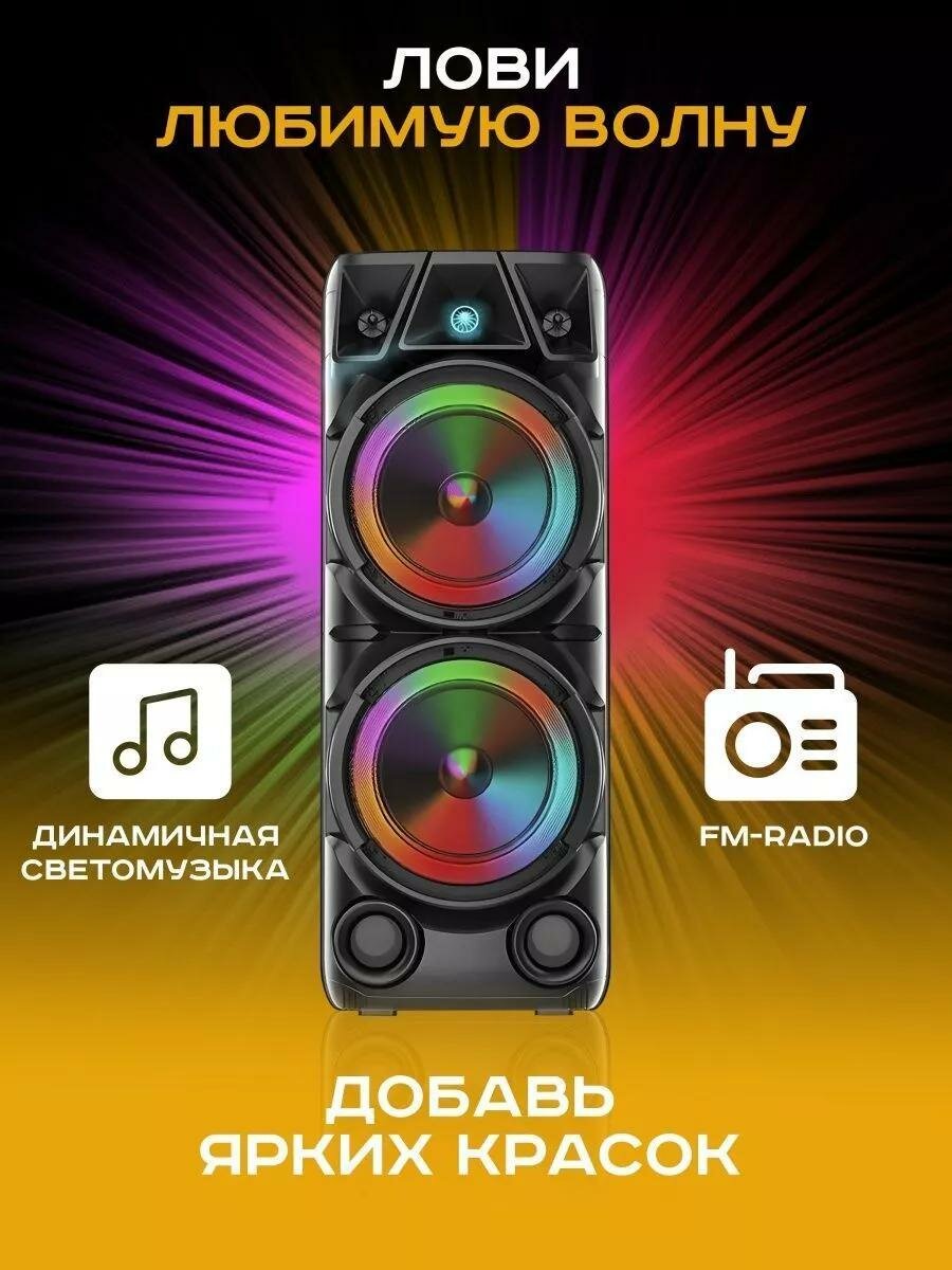 Колонка 8210 Bluetooth, 40Вт с подсветкой и 2 динамиками, FM-радио, USB, AUX, 4500 мАч, Черный информация:
