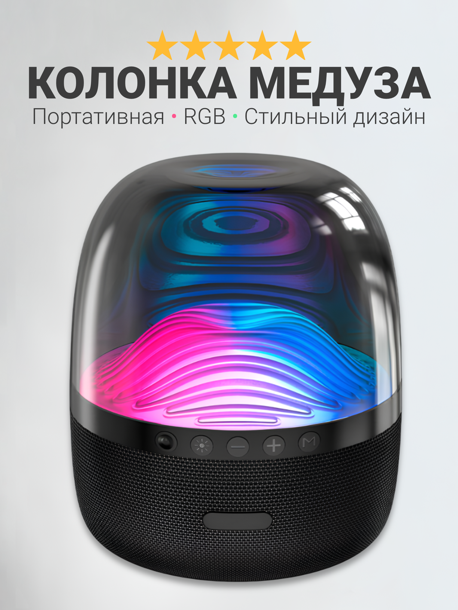 Отзывы на Беспроводная колонка с визуализацией музыки Glazed 8, форма медузы световые эффекты мощный аккумулятор, черная