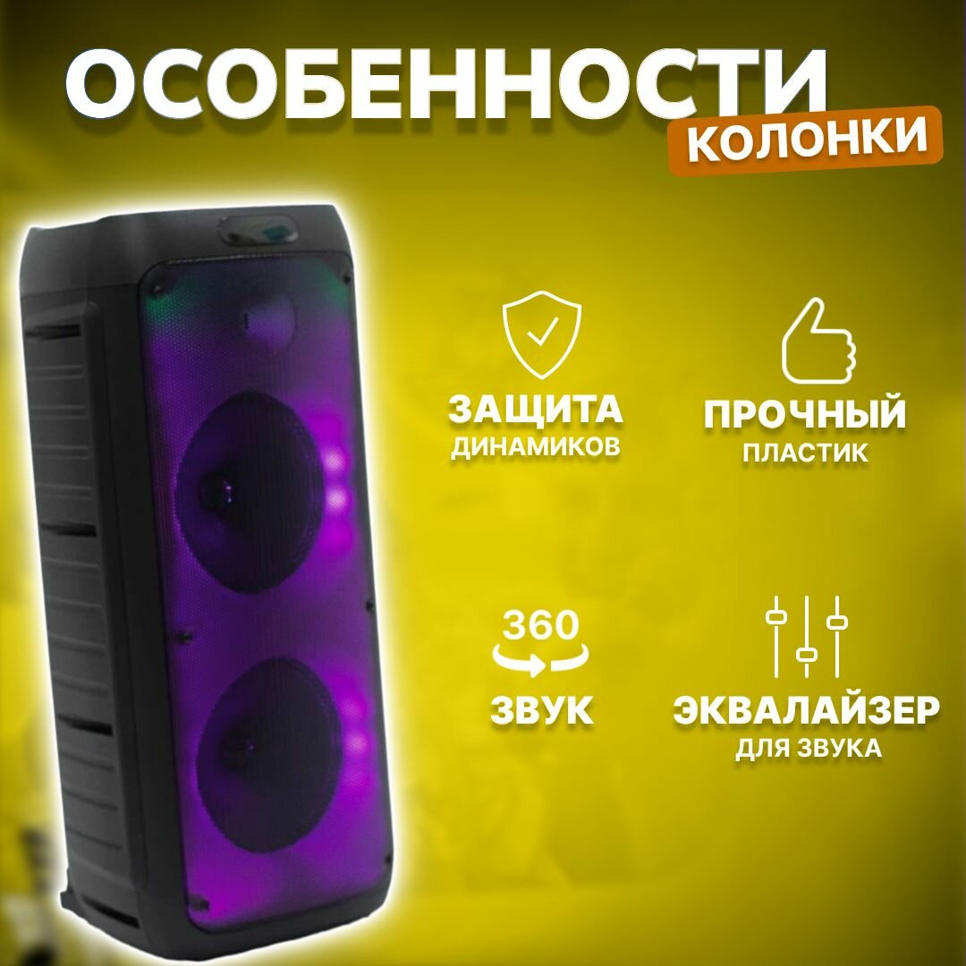 Беспроводная портативная колонка NOIR-audio MAX-100 с проводным микрофоном, караоке, блютуз и светомузыкой