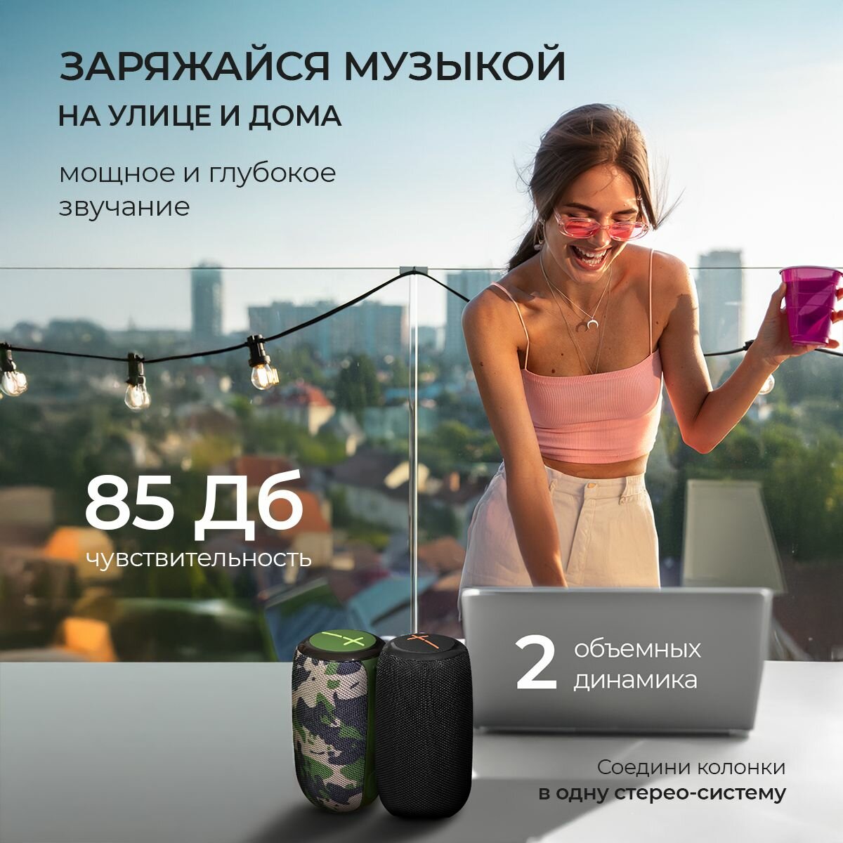 Беспроводная колонка портативная с bluetooth, 10 Вт, маленькая колонка Блютуз, черная, AUX, TF, FM, TWS 1 873 ₽