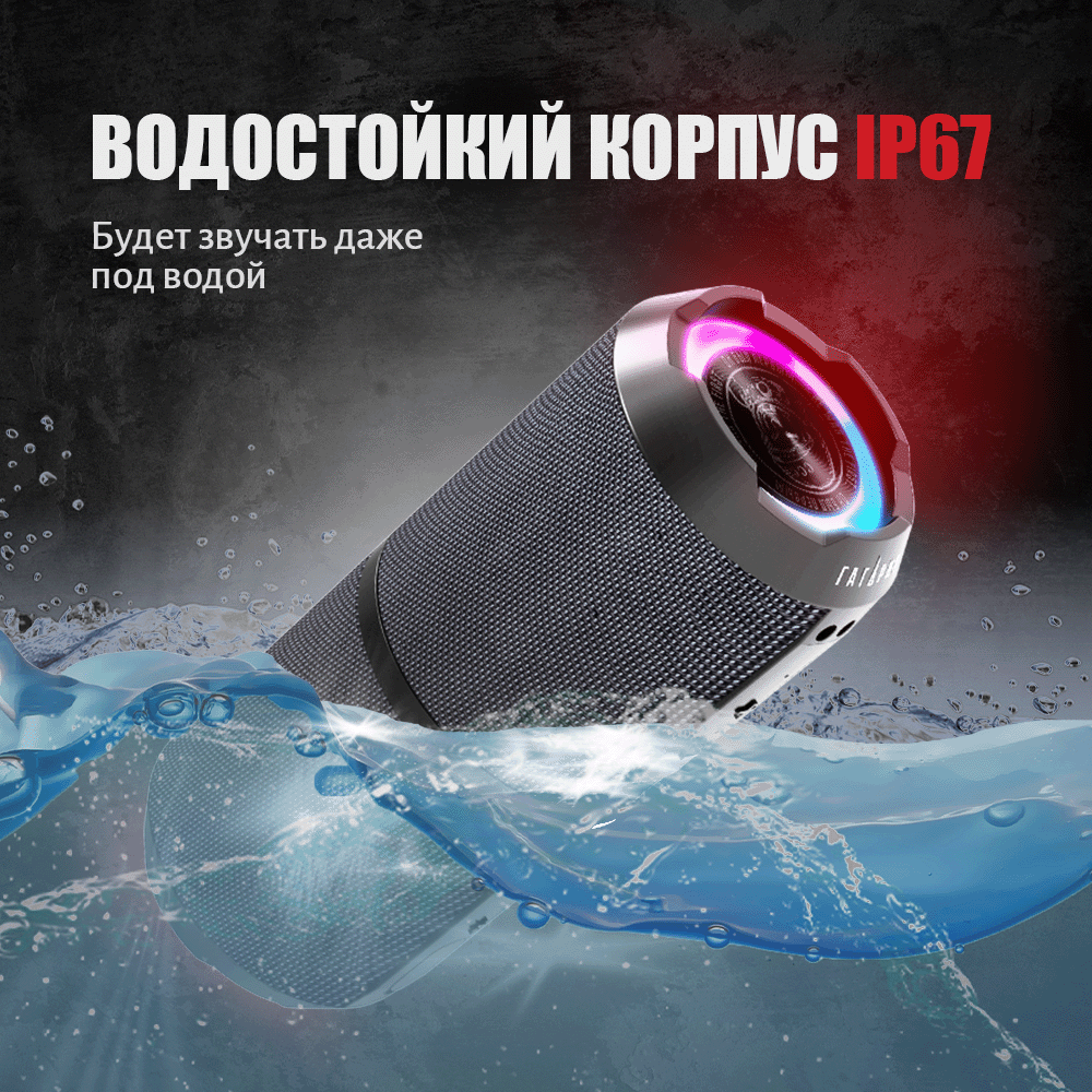 Портативная Bluetooth колонка Урал Гагарин ГР-001 черная, водонепроницаемая IP67, 20 Вт Мощность, TWS, FM-радио, беспроводная 4 450 ₽