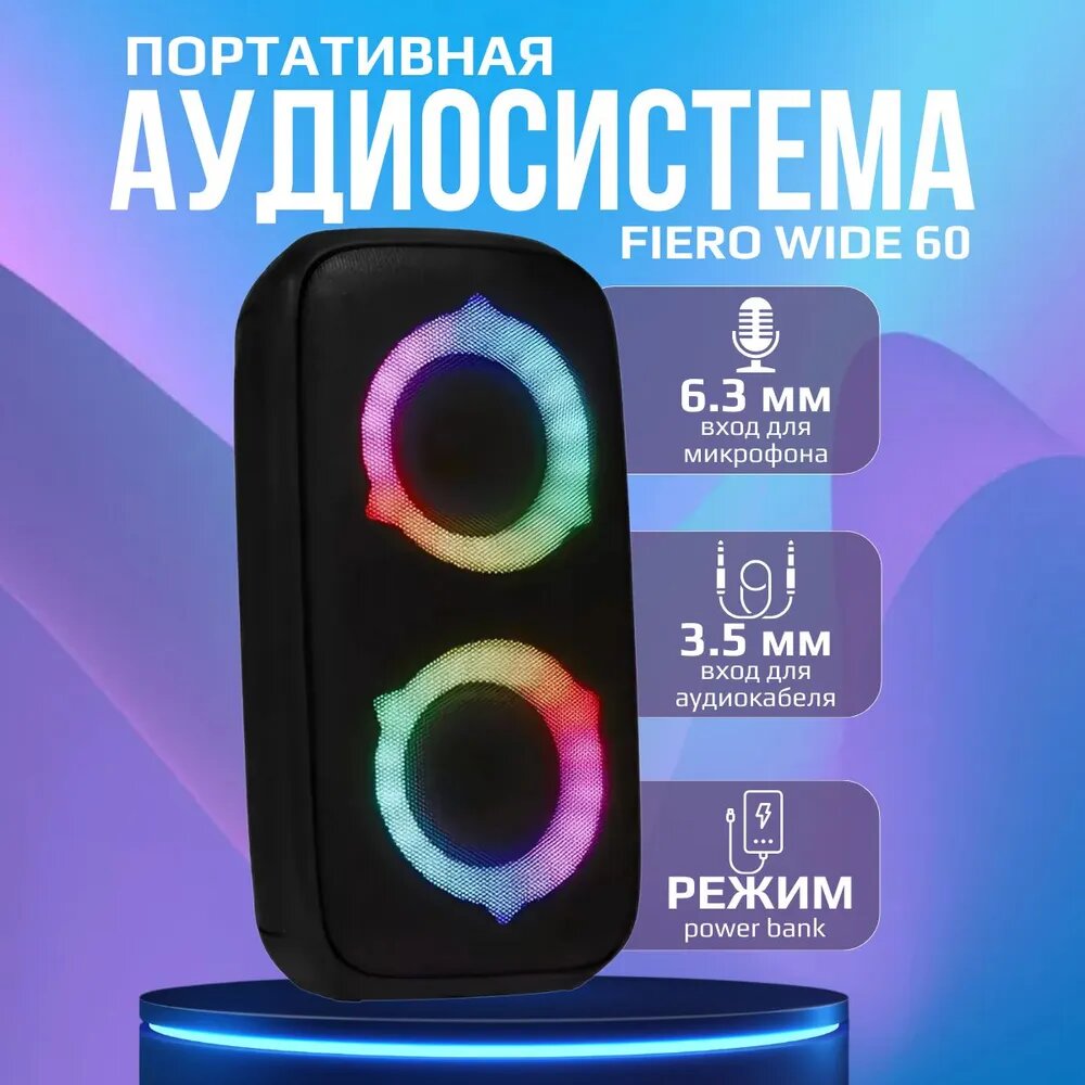 Портативная колонка Fiero Wide 60 , черный, с функцией караоке и режимом Power Bank информация: