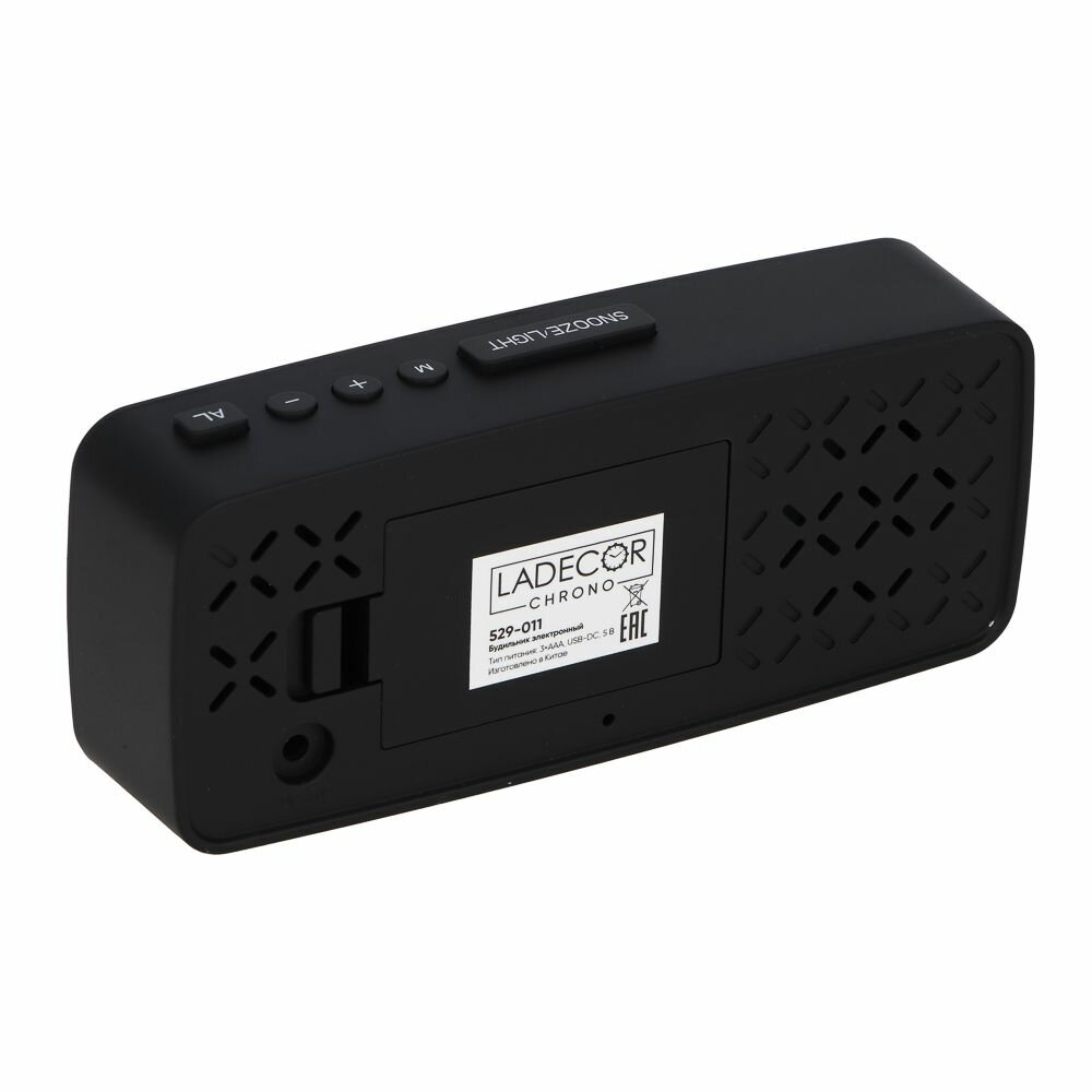 10 цен на Будильник электронный, LADECOR CHRONO, 14x5,7 см, USB/3xAAA, пластик, цвет черный