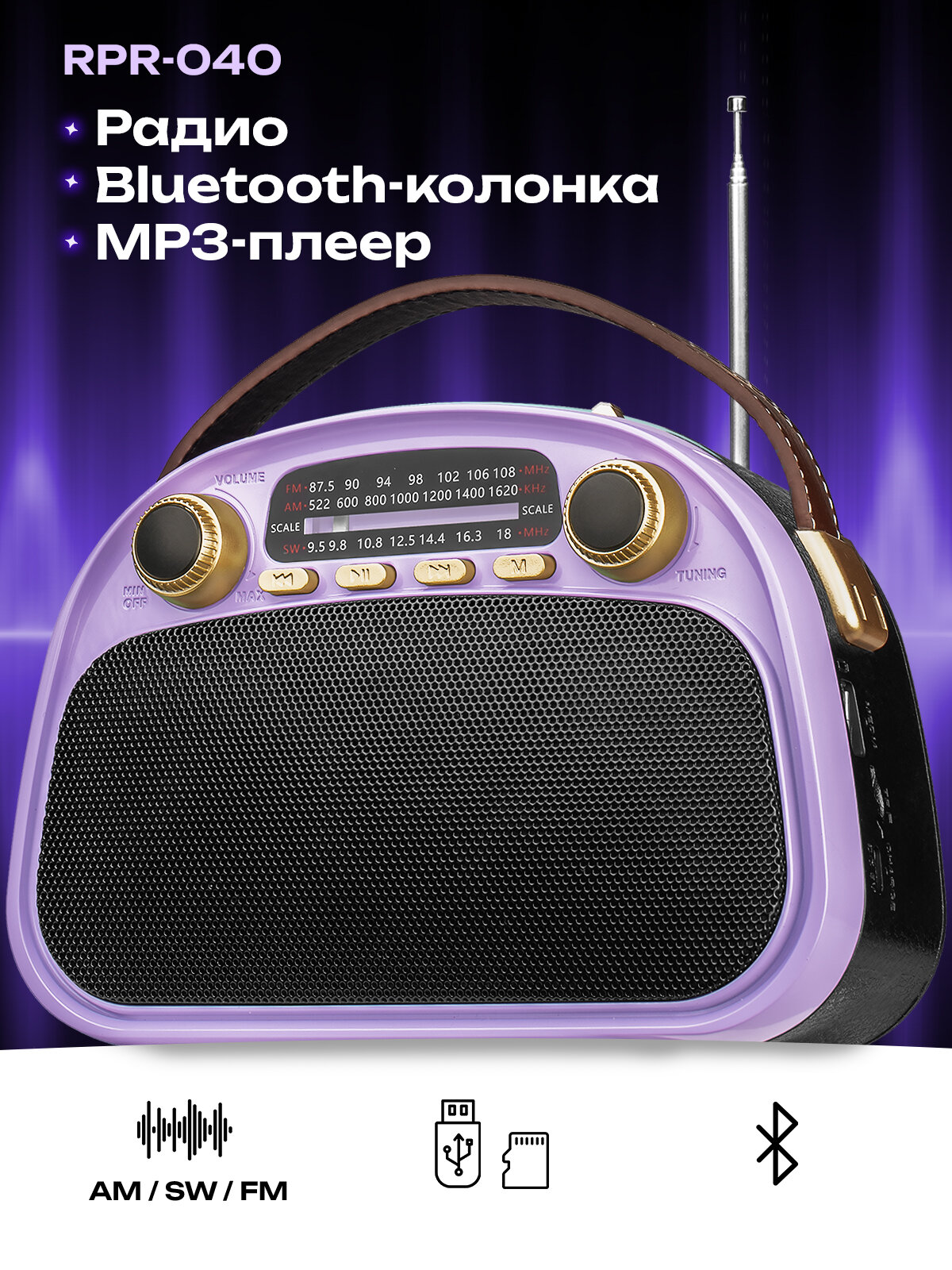10 цен на Радиоприемник RITMIX RPR-040 LAVENDER, портативный, Bluetooth, USB/micro SD