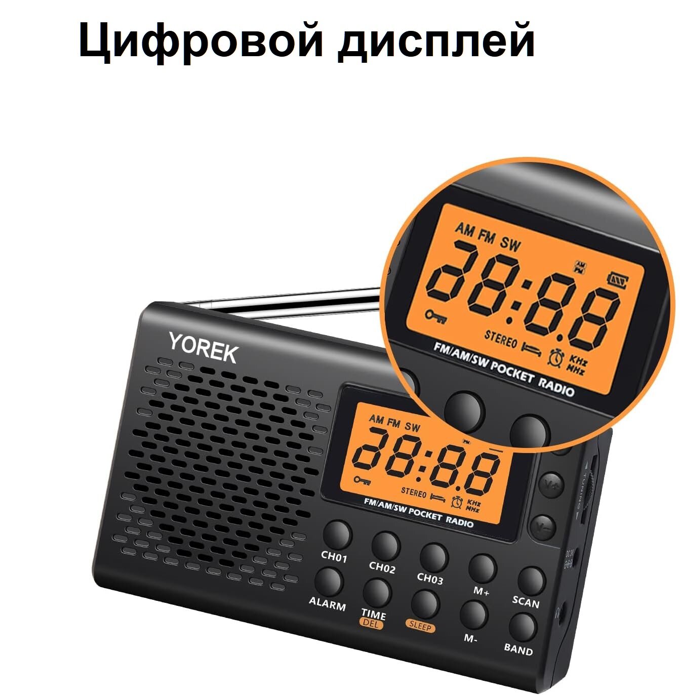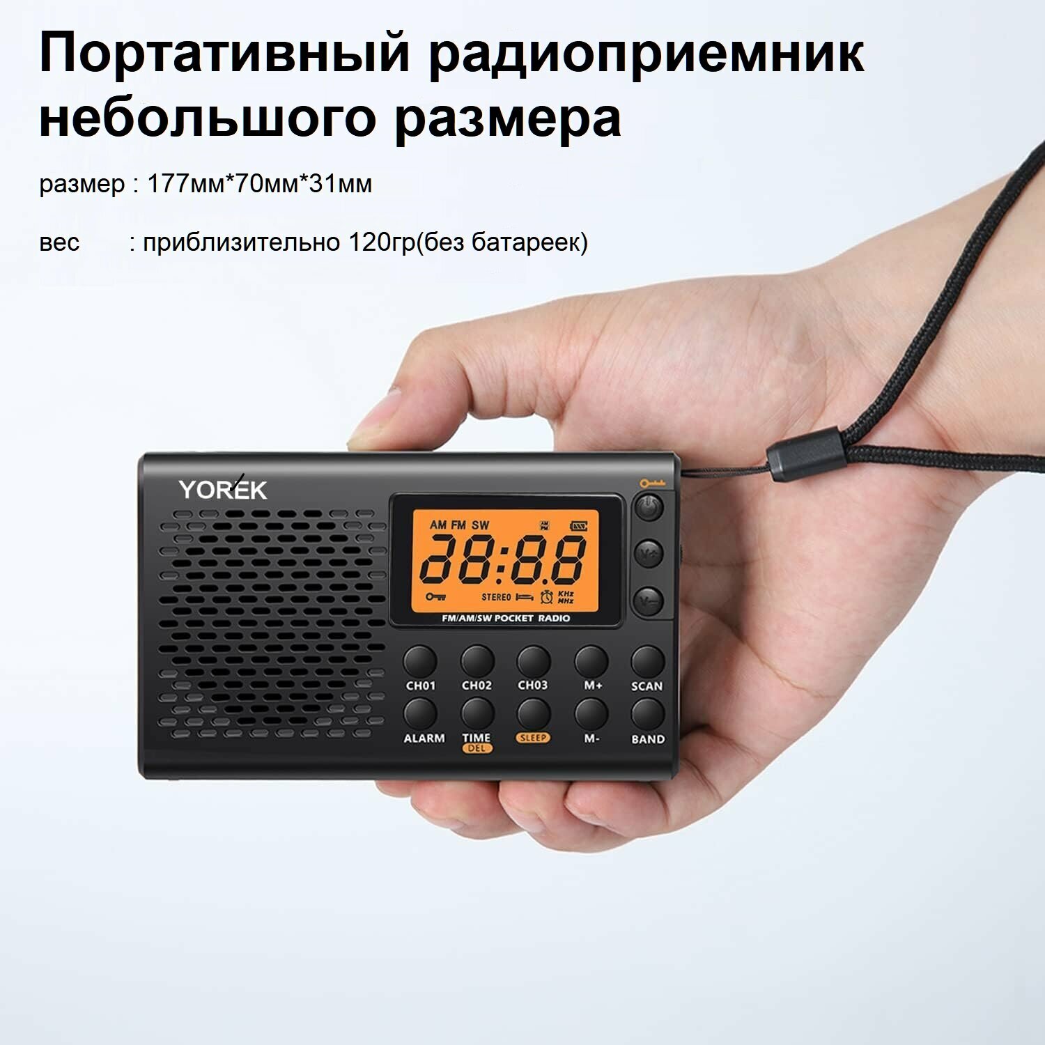 10 цен на Портативный радиоприемник YK-M03, Диапазоны FM, MW, SW, DSP-процессор, Карманный, с Часами, Питание от Батареек 2*AA