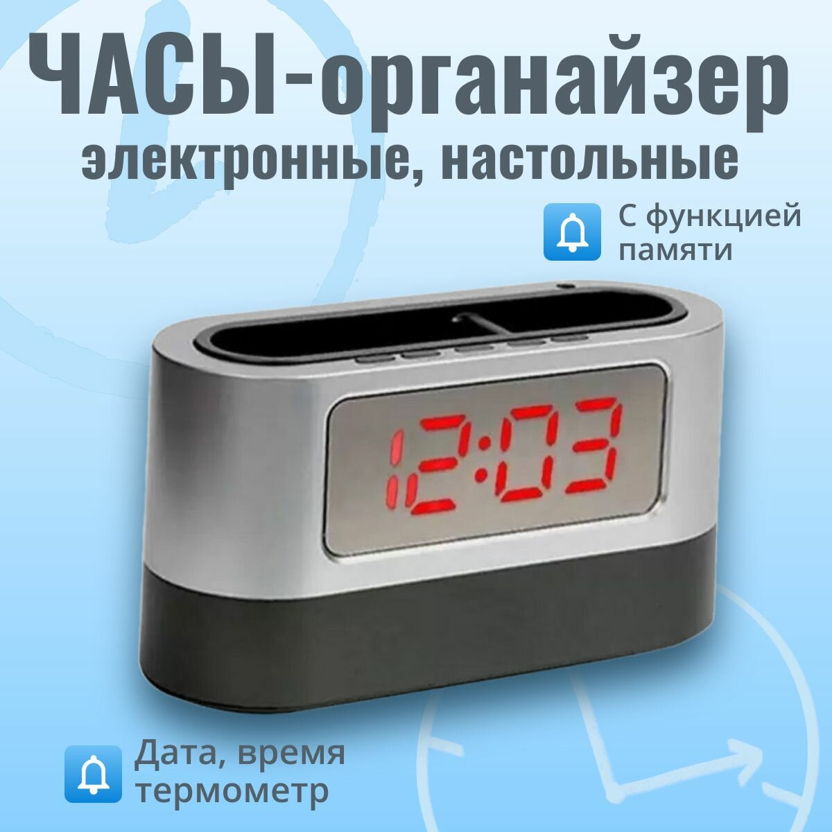Электронные часы с функцией памяти / Цифровой будильник органайзер с термометром Красные цифры информация: