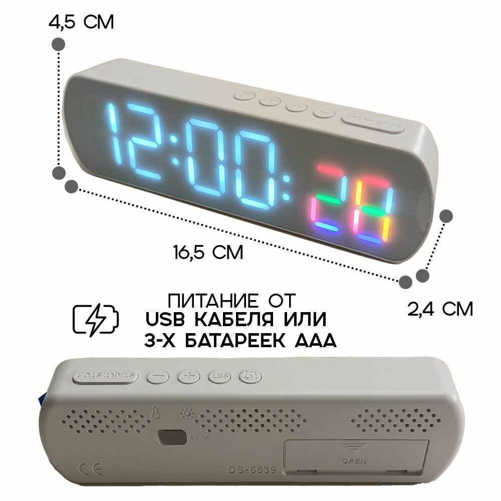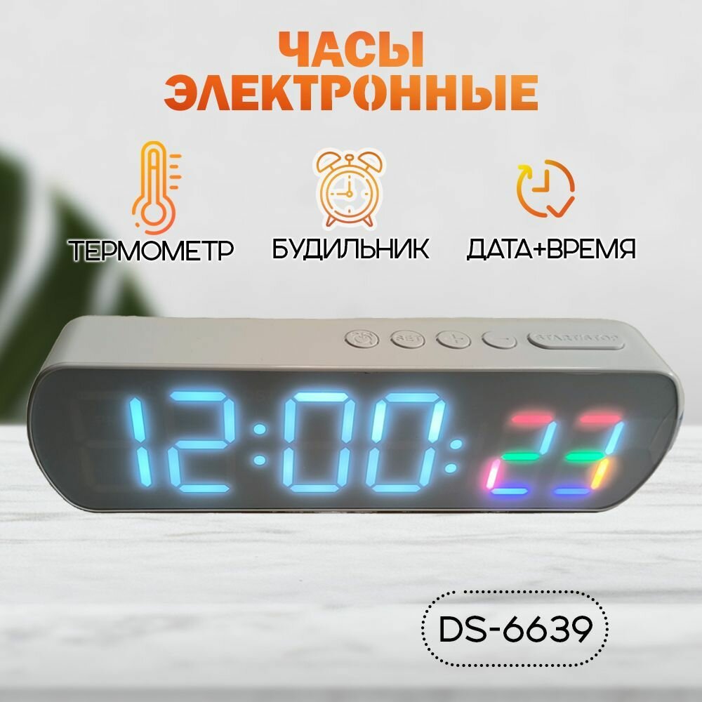 10 цен на Часы настольные электронные с подсветкой, термометром, календарем и будильником, цвет индикации голубой