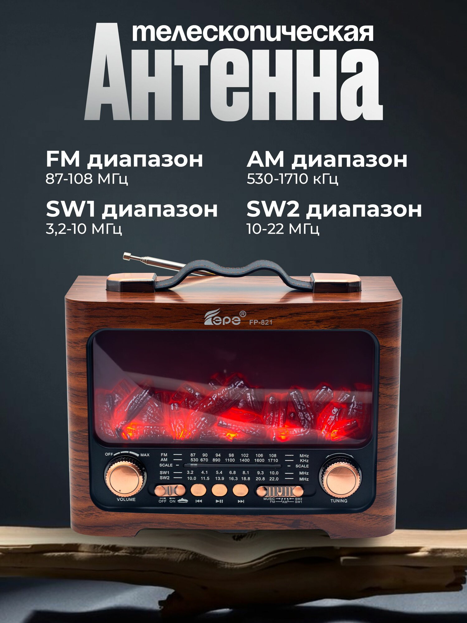 Радиоприемник с камином (цвет дерево) информация: