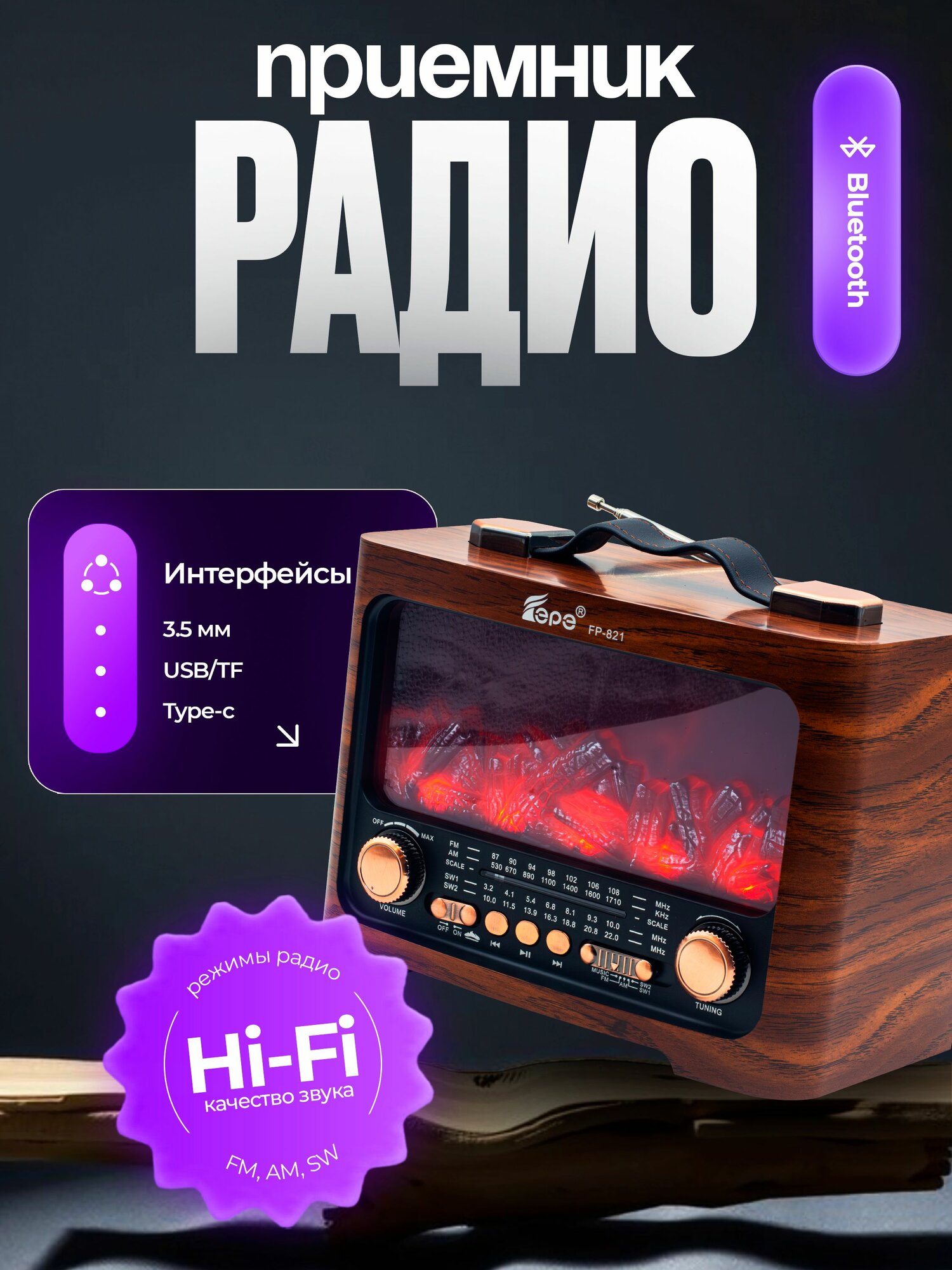 10 цен на Радиоприемник с камином (цвет дерево)