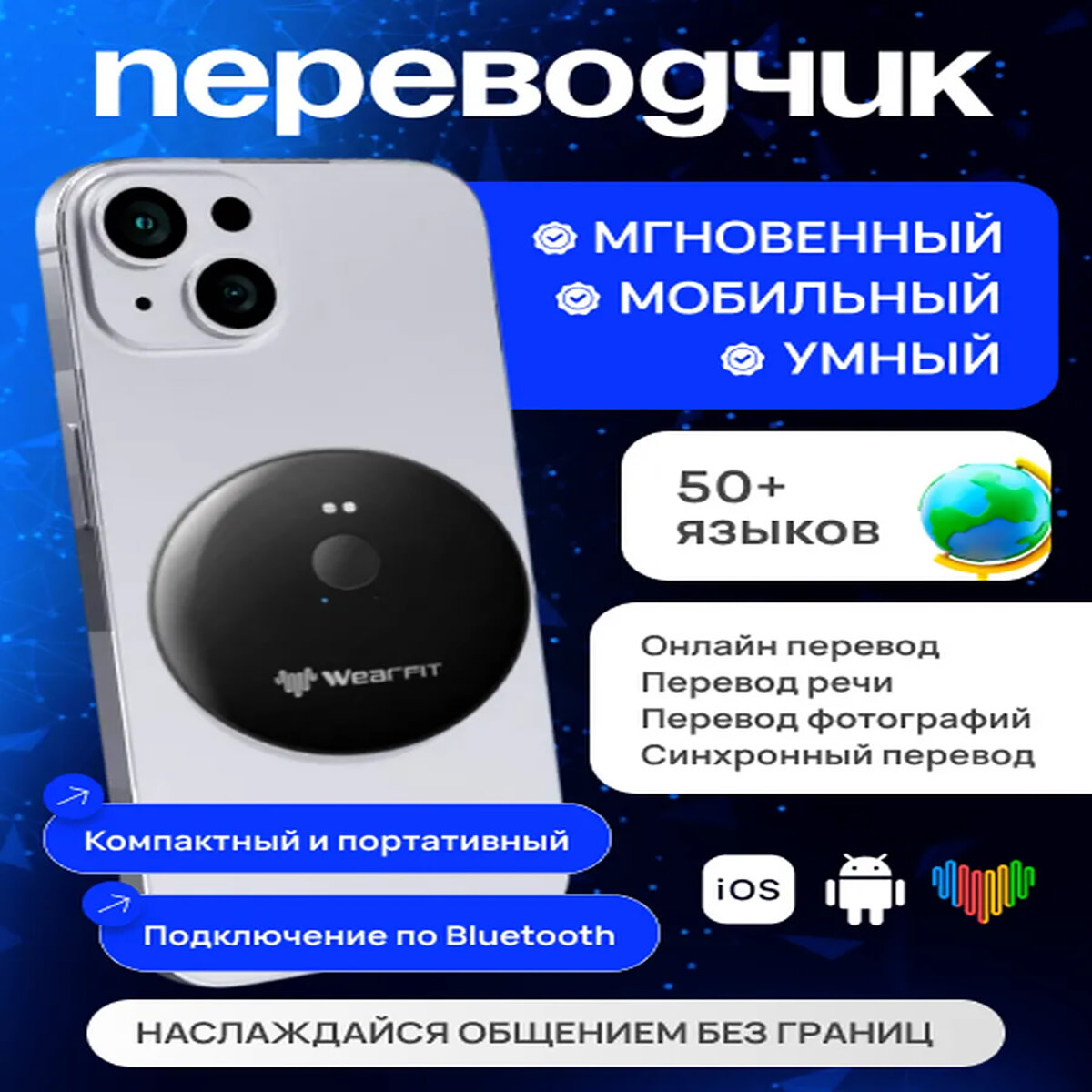 Интеллектуальный переводчик в режиме реального времени, синхронный перевод более чем на 50 языков информация: