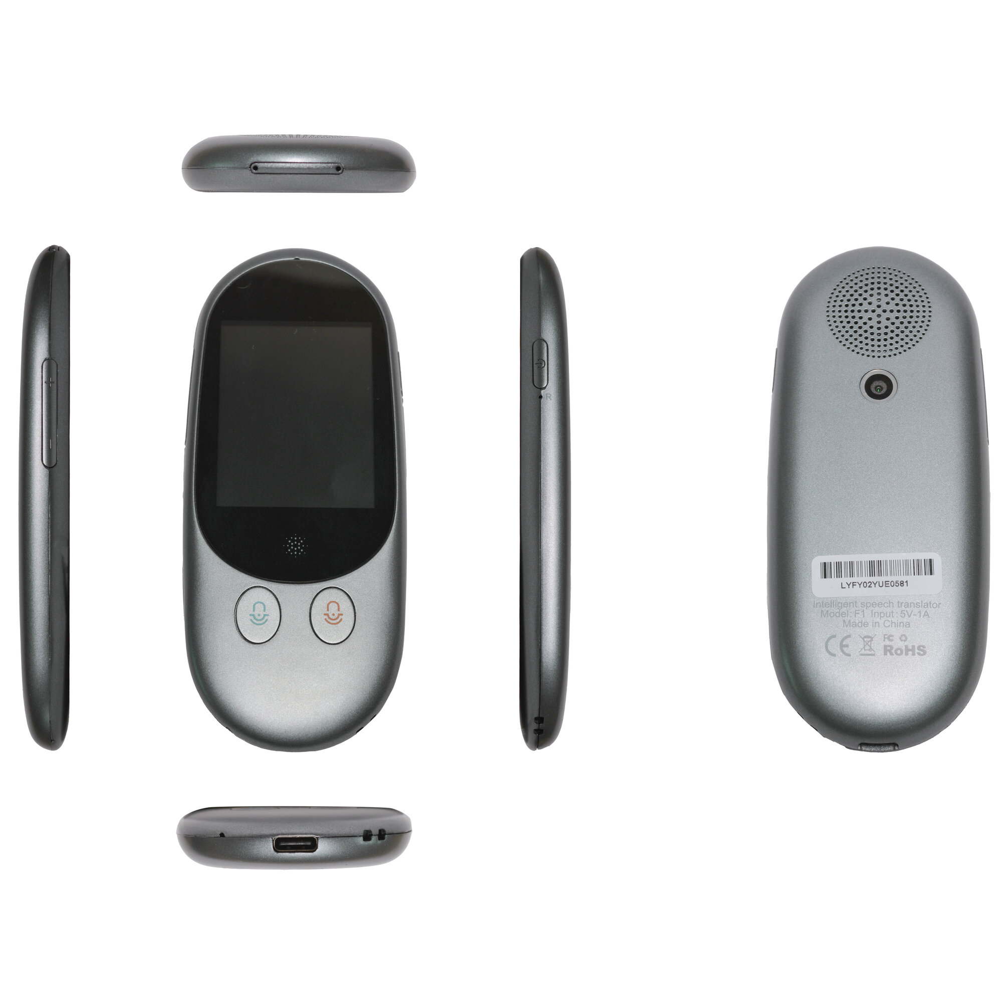 Портативный голосовой переводчик GSMIN F1A с экраном и камерой (60 языков, сенсорный экран 2,4 дюйма, камера) (Серый) информация: