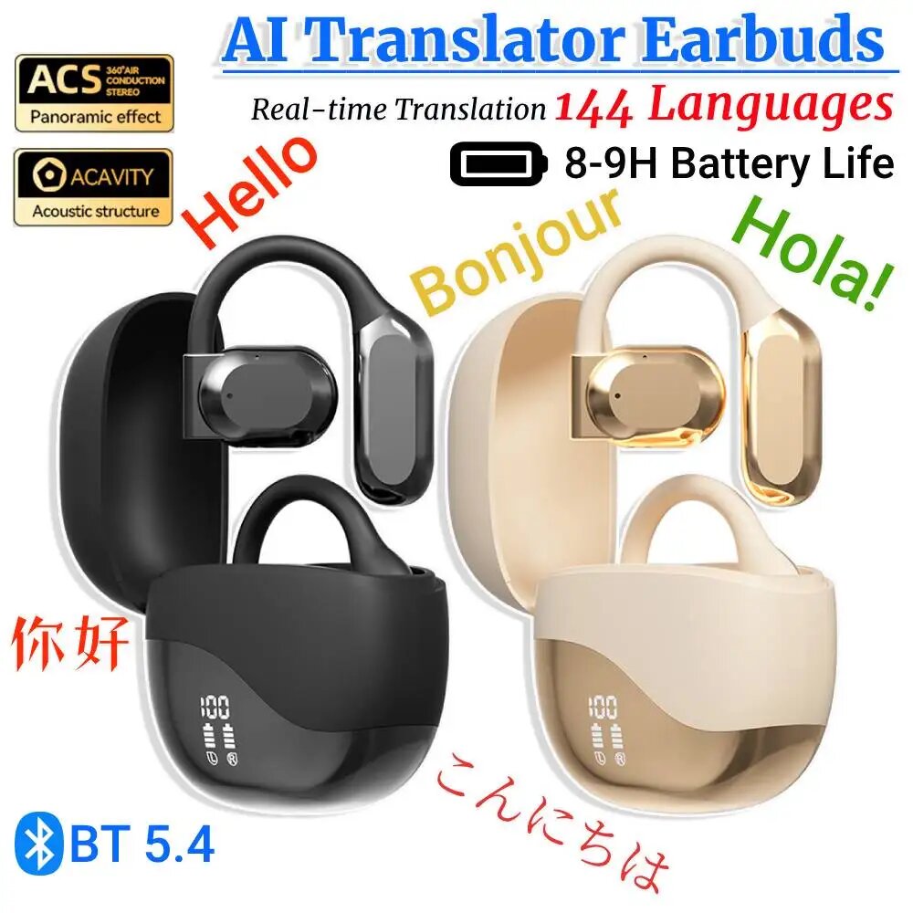 10 цен на Наушники-переводчики с искусственным интеллектом, 144 языка, Beige