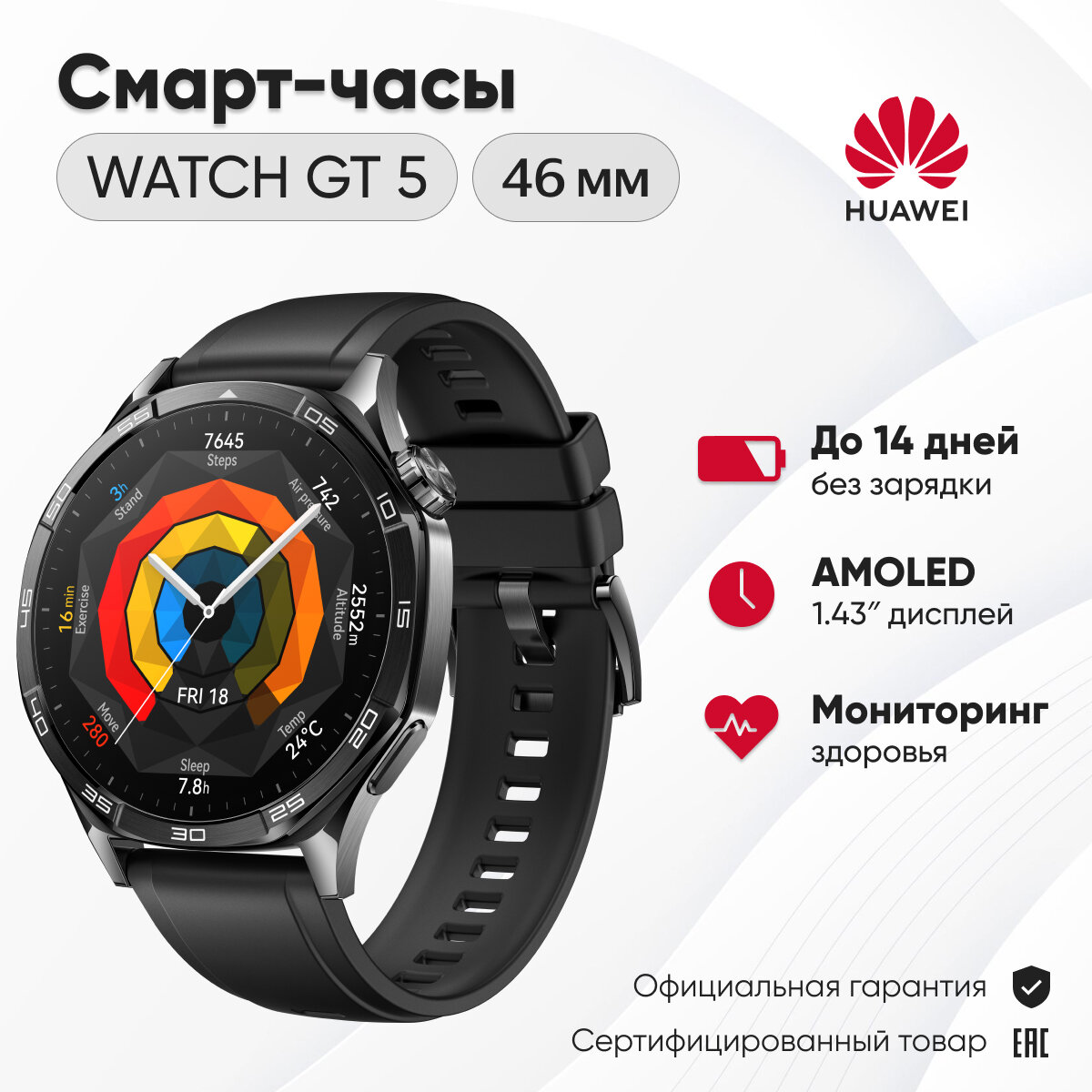 10 цен на Смарт-часы HUAWEI Watch GT 5, 46 мм, 1.43" AMOLED, GPS, черный