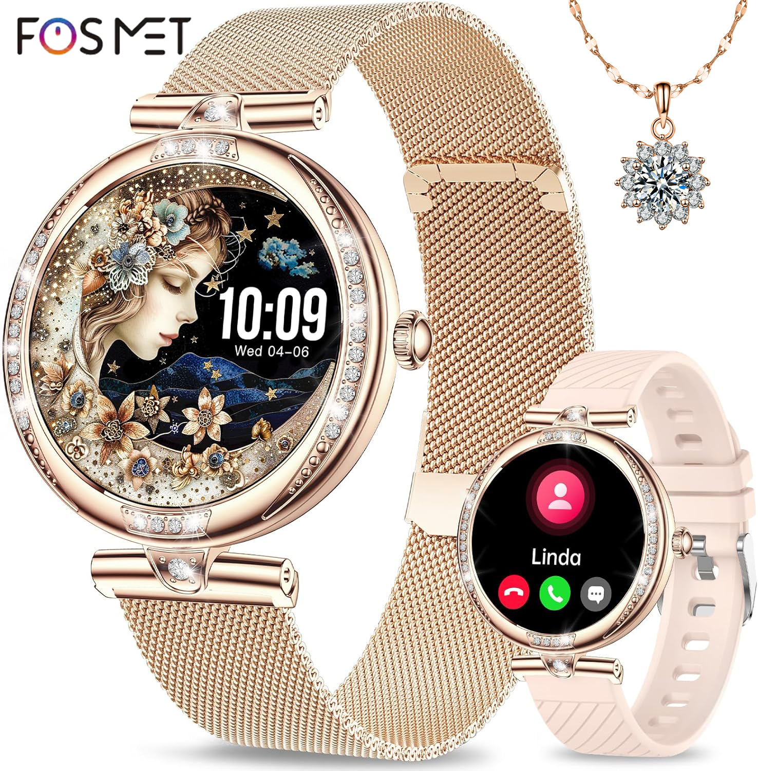 10 цен на 2025 Смарт часы женские С ожерельем, Умные круглые смарт-часы на запястье