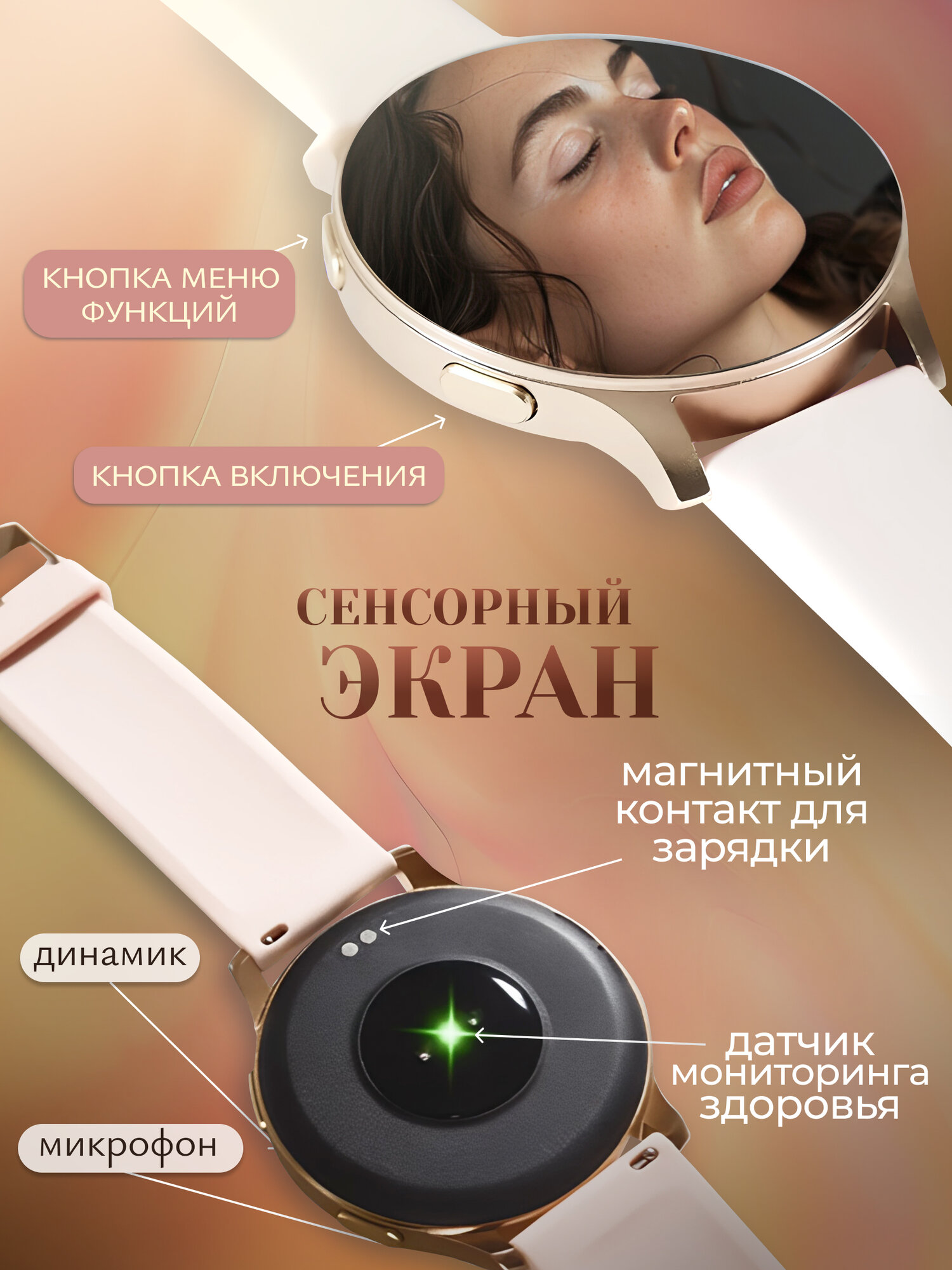 Смарт часы женские круглые smart watch, умные часы наручные с функцией звонка для IOS, Android, электронные сенсорные, спортивные фитнес часы информация: