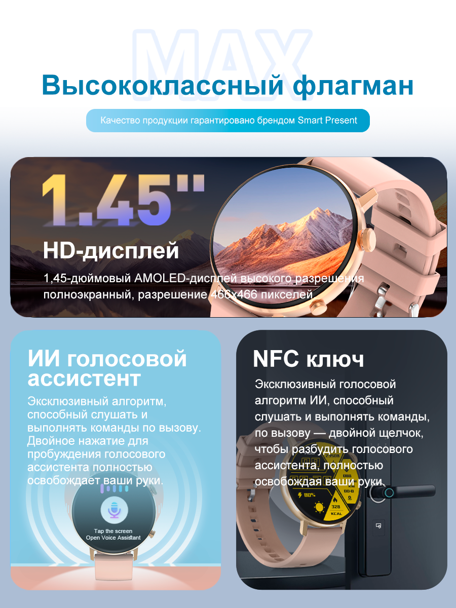 Отзывы на Смарт-часы наручные SMART PRESENT DT88Max женские, круглые, с функцией телефона, водонепроницаемые, розовые
