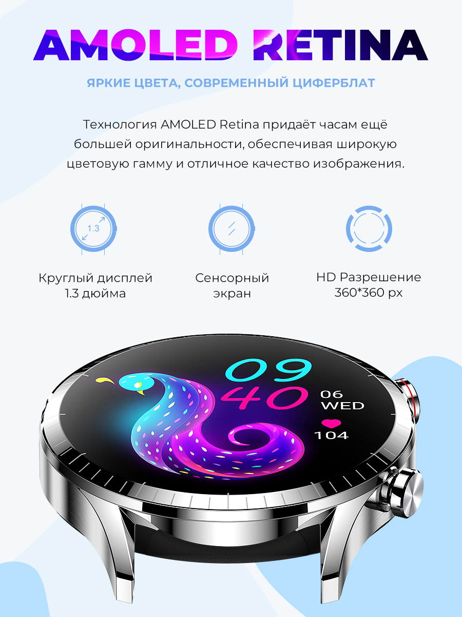 Отзывы на Умные Cмарт часы Double A Smart Watch Smart Watch 23 AMOLED мужские наручные круглые водонепроницаемые, серебристые силиконовые