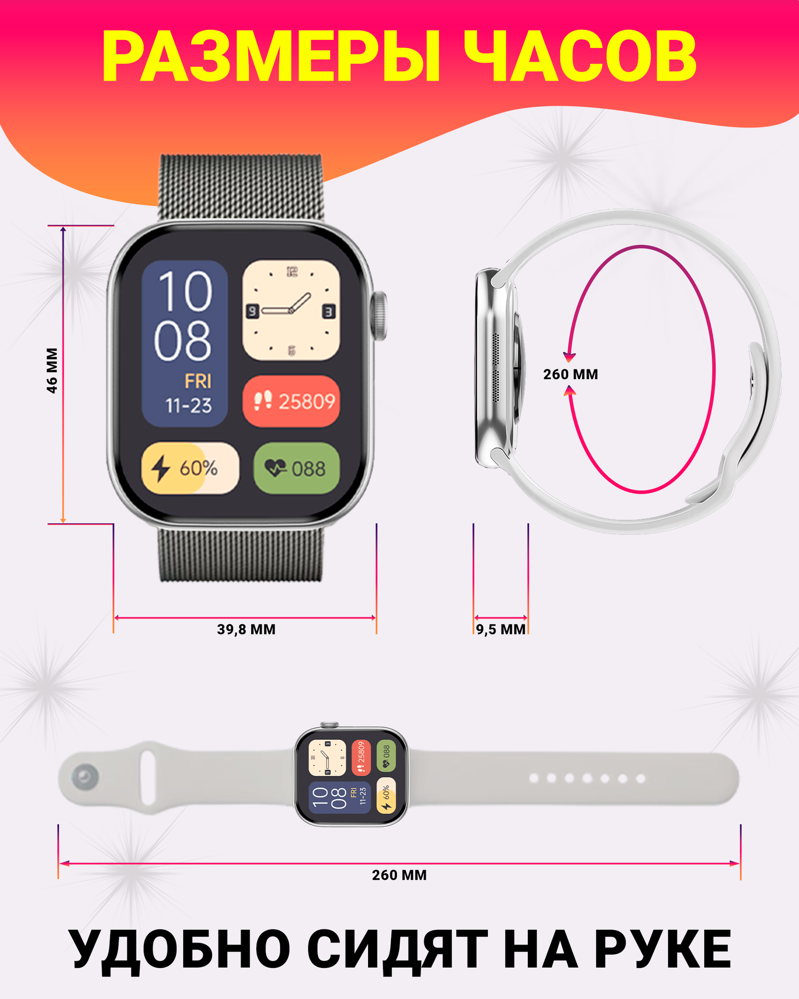 Отзывы на Умные смарт часы DT WATCH 10 (X), watch 10, premium smart watch, 46 мм с NFC, 2 ремешка, Серебристый