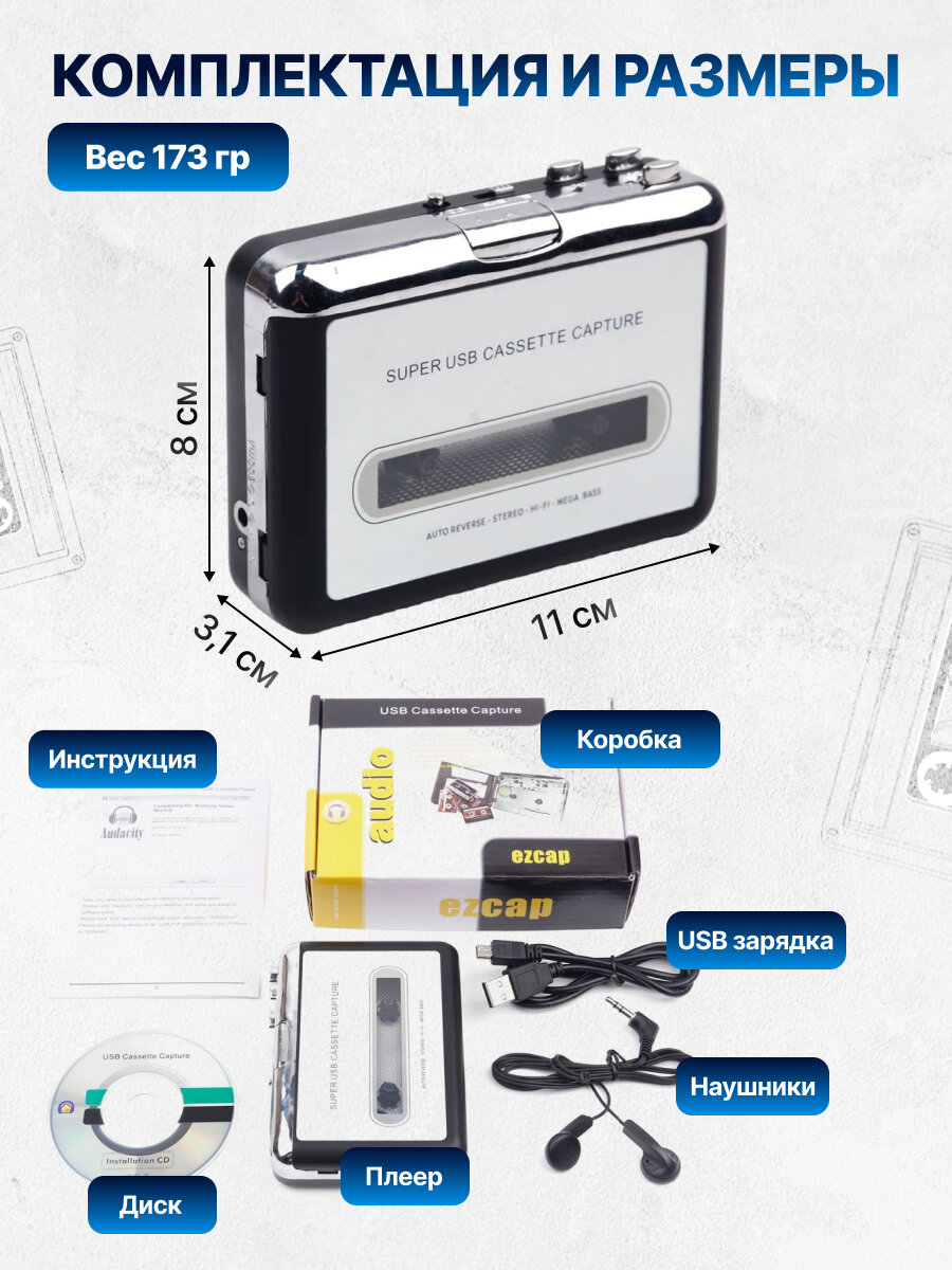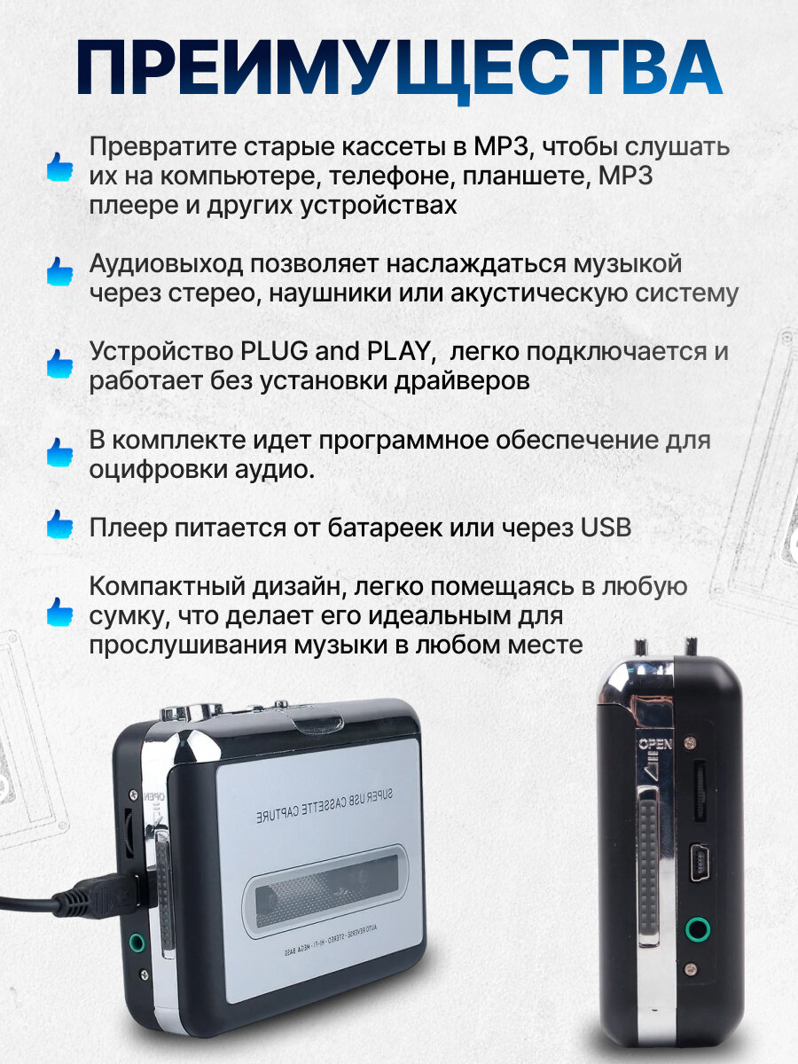 10 цен на Кассетный MP3 плеер проигрыватель с оцифровкой аудиокассет с USB