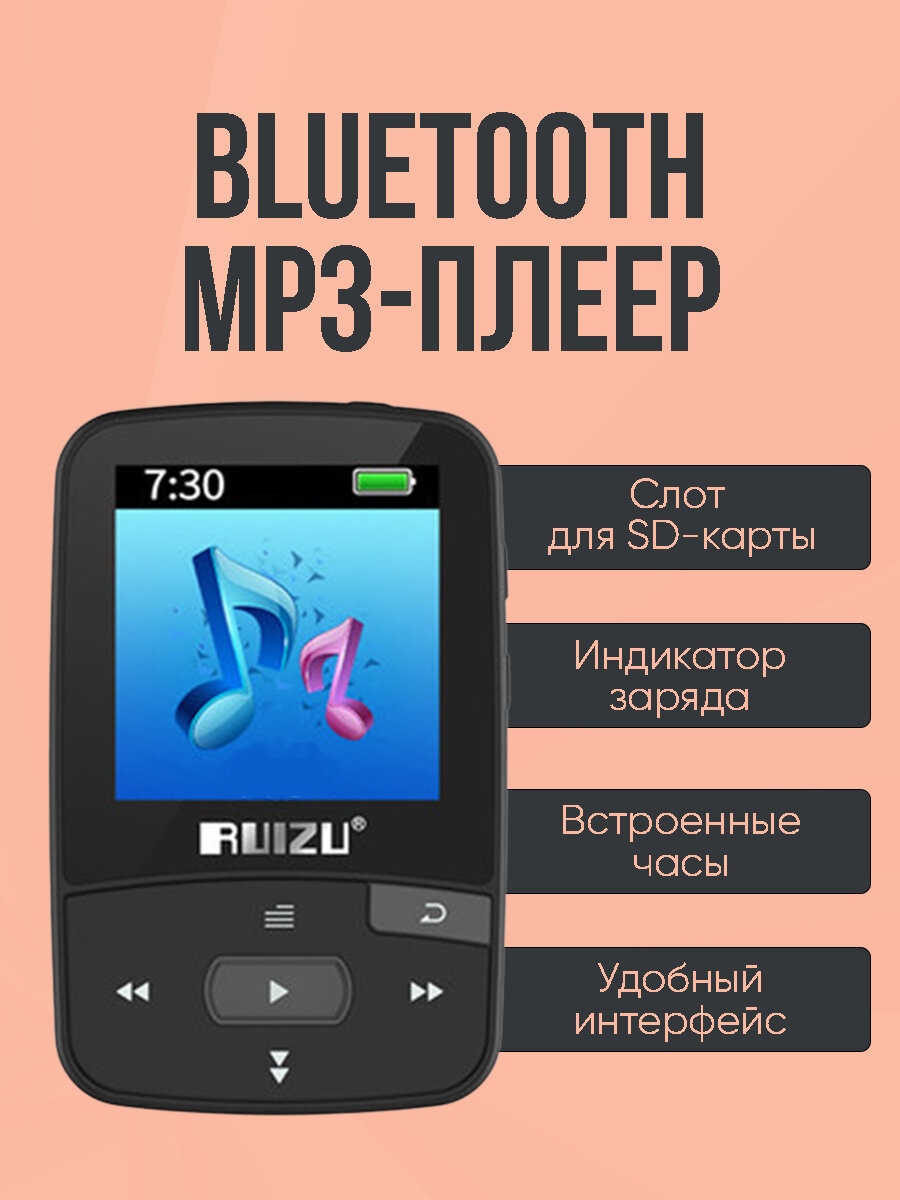 Bluetooth Mp3 плеер Ruizu X50 8Гб чёрный информация: