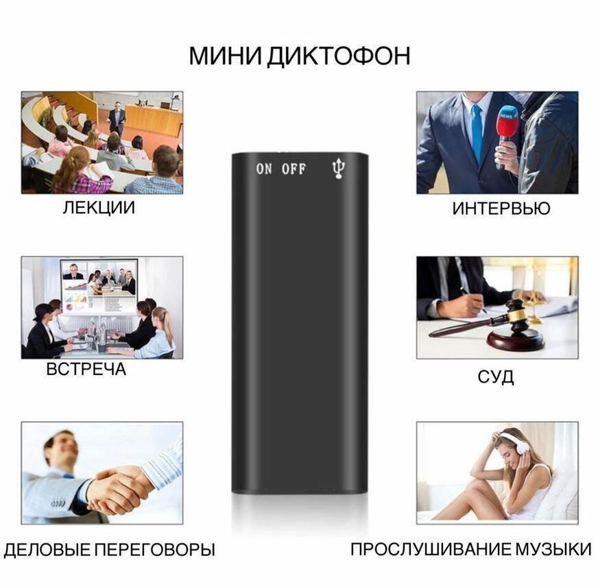 Отзывы на Диктофон мини 09W, диктофон, плеер, 8GB, запись до 100ч, черный