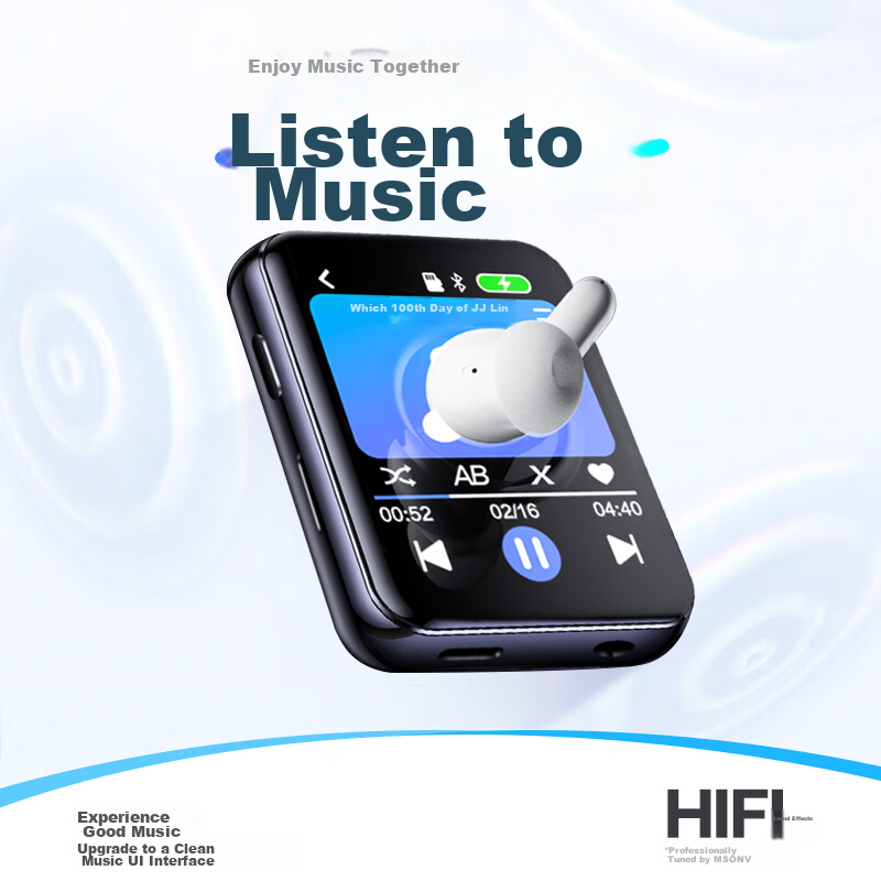MP3-плеер 144GB с Bluetooth 5.2, встроенный динамик, FM-радио, диктофон, читалка электронных книг, мини-дизайн, для спорта и бега (с наушниками)