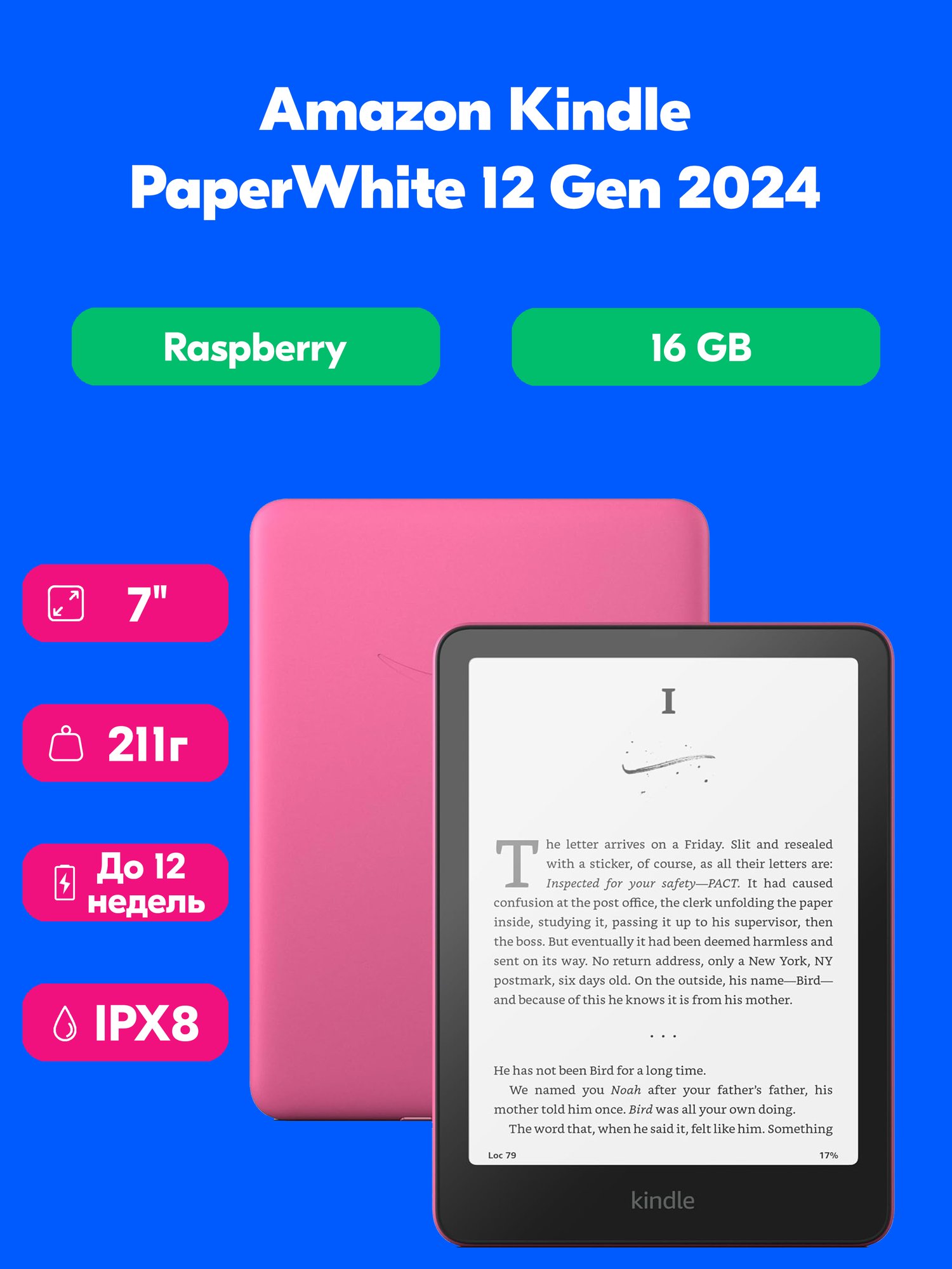 10 цен на 7” Amazon Kindle Paperwhite 2024 (12th Gen) 16Gb Raspberry Электронная книга