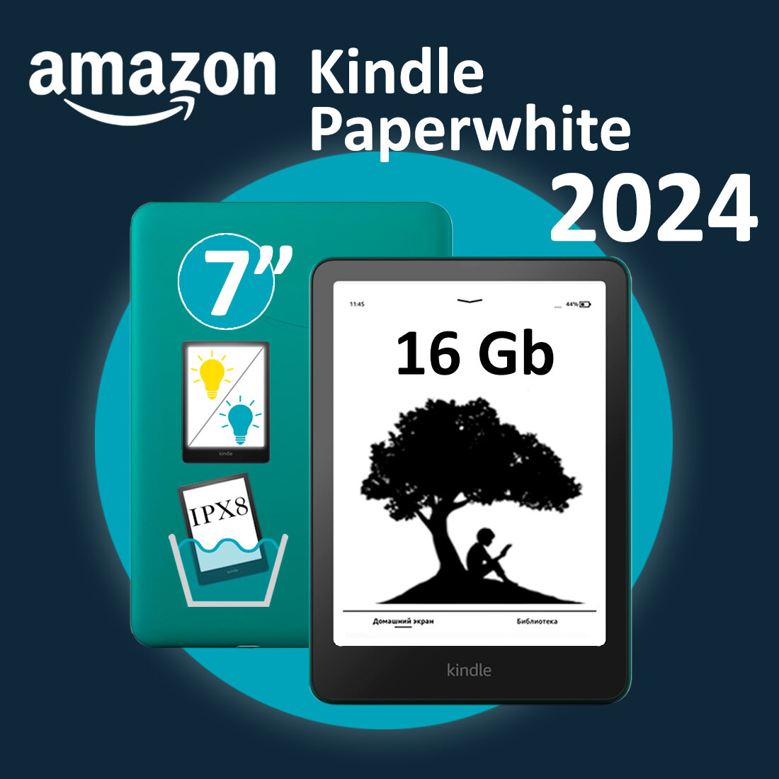Электронная книга Amazon Kindle PaperWhite 2024 16Gb (с рекламой) Зеленый | Jade 22 490 ₽
