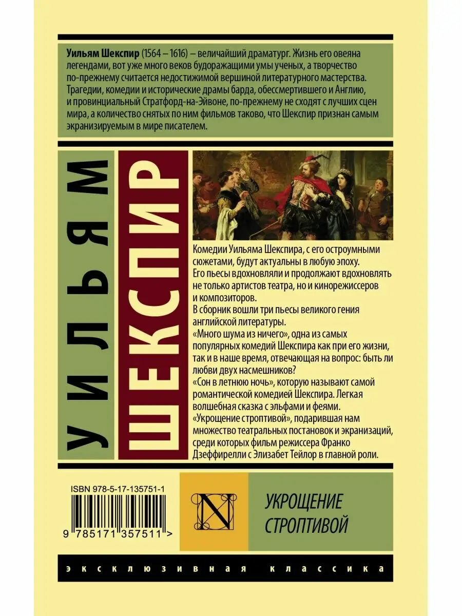 Мы выбрали 10 лучших цен на Укрощение строптивой. Перед тем как купить Укрощение строптивой посмотрите найденные предложения из Яндекс Маркета и других сайтов на основе XML фидов.