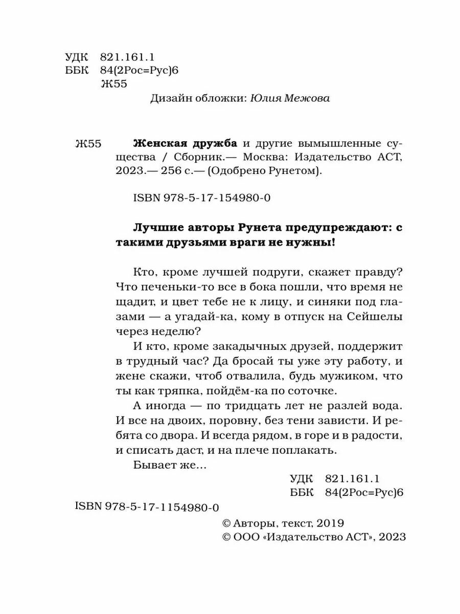 Мы выбрали 10 лучших цен на Женская дружба и другие вымышленные существа. Перед тем как купить Женская дружба и другие вымышленные существа посмотрите найденные предложения из Яндекс Маркета и других сайтов на основе XML фидов.