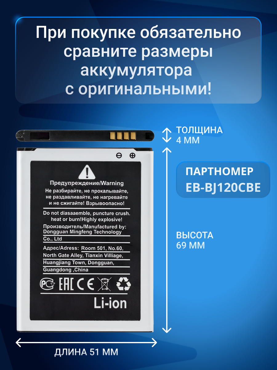 Аккумулятор EB-BJ120CBE для телефона Samsung Galaxy J1 (2016) (SM-J120F/DS), EB-BJ120BBE, EB-BJ120CBU, GH43-04565A информация: