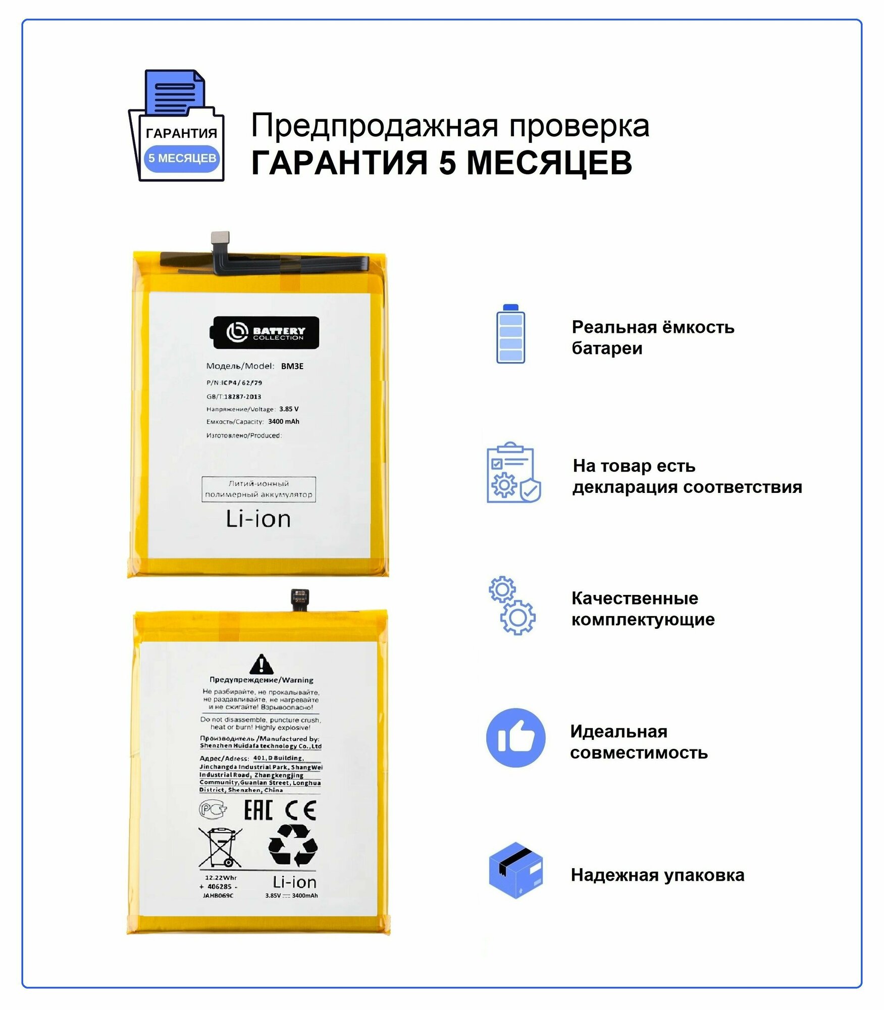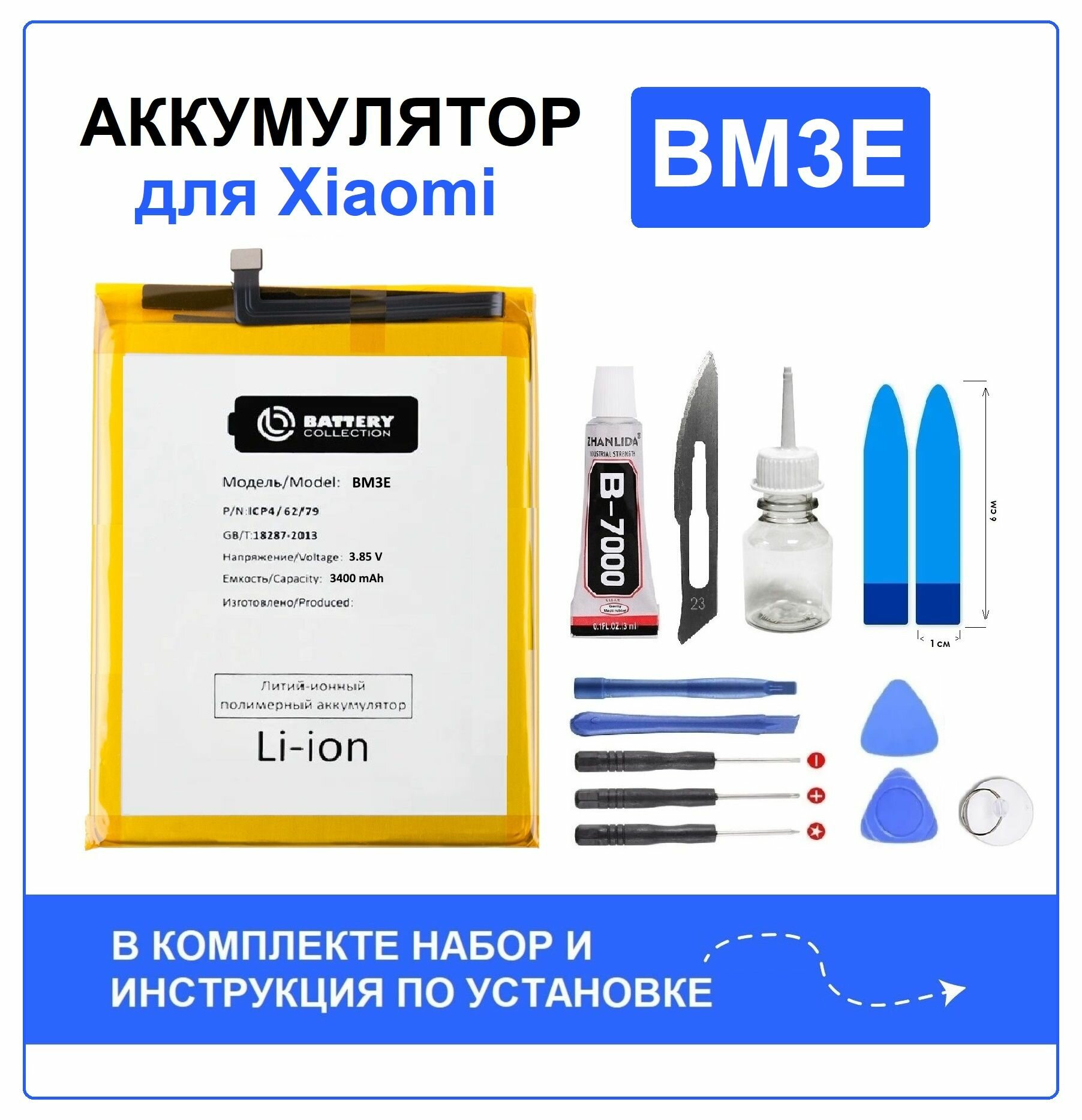 Аккумулятор для Xiaomi Mi 8 (BM3E) Battery Collection (Премиум) + набор для установки информация: