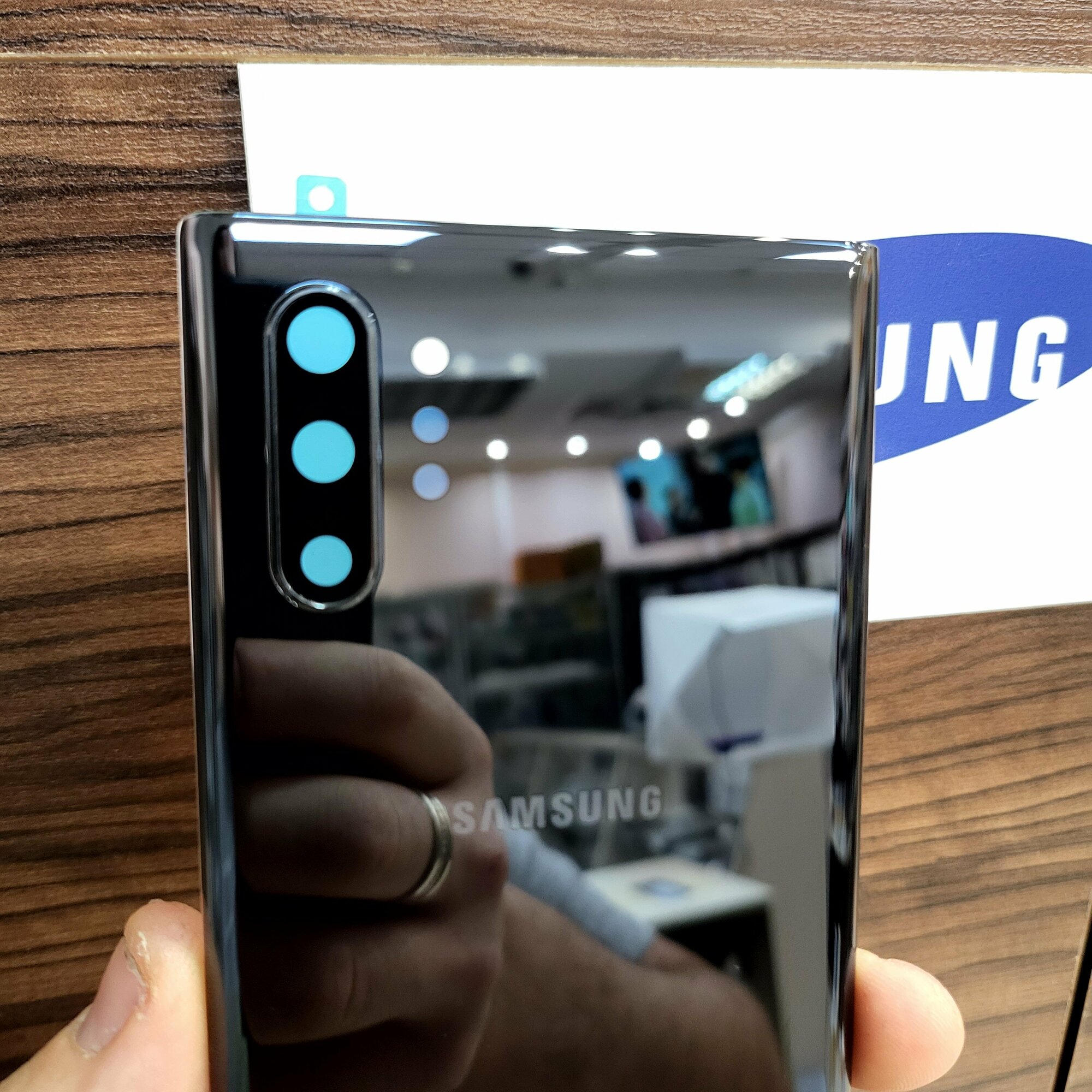 Крышка для Samsung Note 10 Plus (заднее стекло) "Высокое качество" цвет: Black информация: