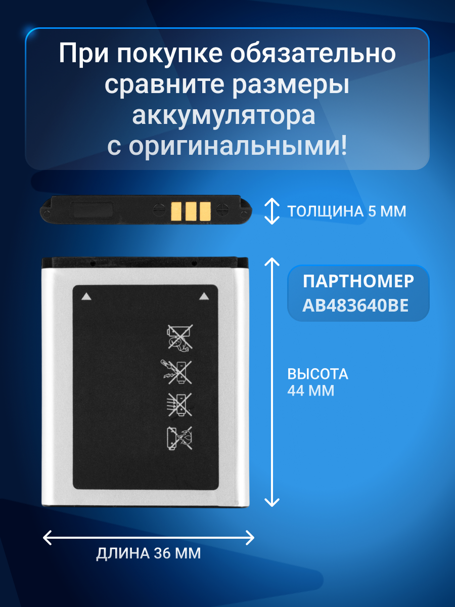 Аккумулятор AB483640BU для Samsung GT-C3050, GT-S7350, GT-S8300, SGH-F110, SGH-E740, SGH-J610 информация: