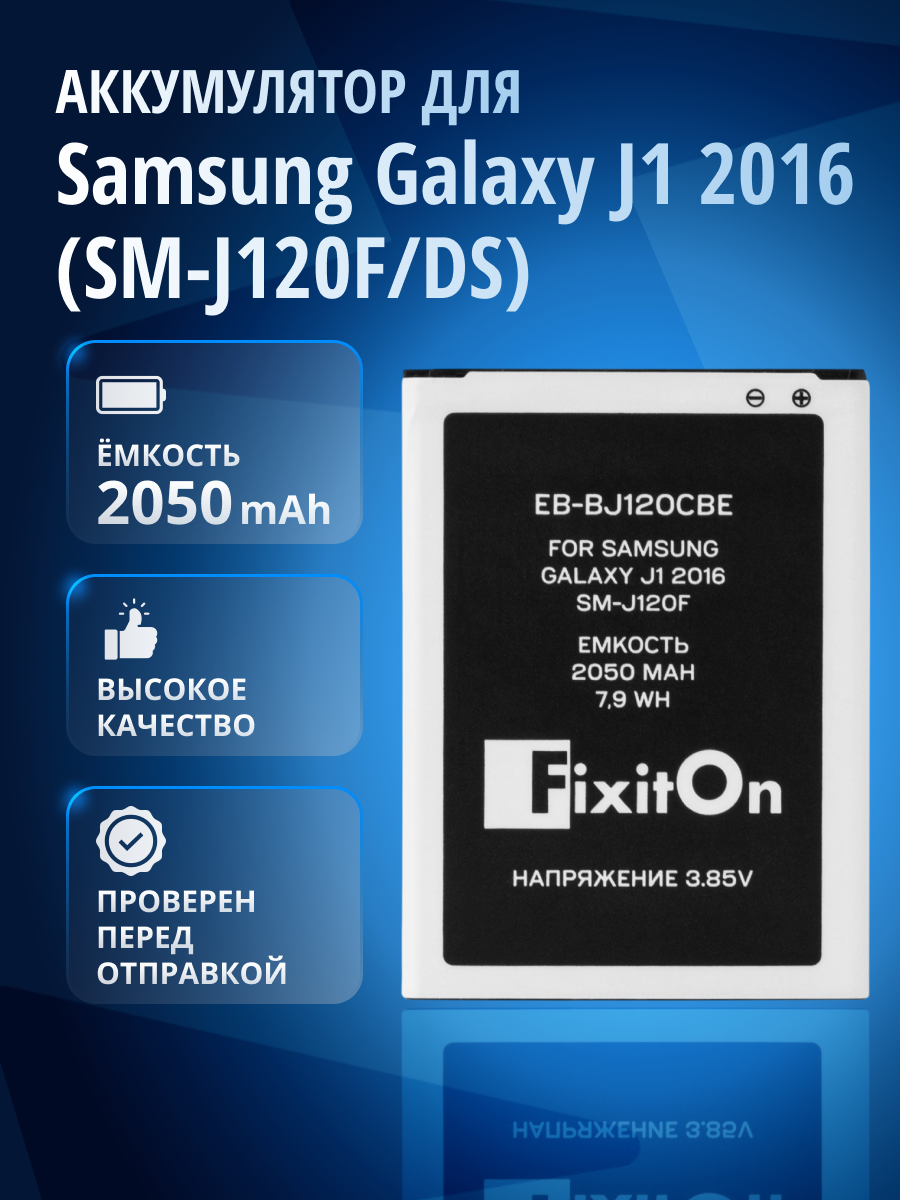 Отзывы на Аккумулятор FixitOn EB-BJ120CBE для Samsung Galaxy J1 (2016) (SM-J120F/DS)