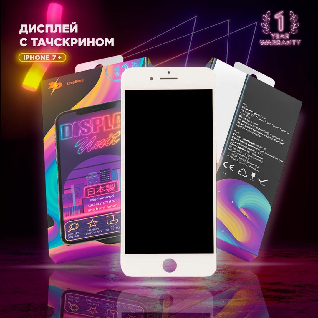 Отзывы на Дисплей для iPhone 7 plus, в сборе с тачскрином, белый, прокладка-абсорбер; ZeepDeep PREMIUM