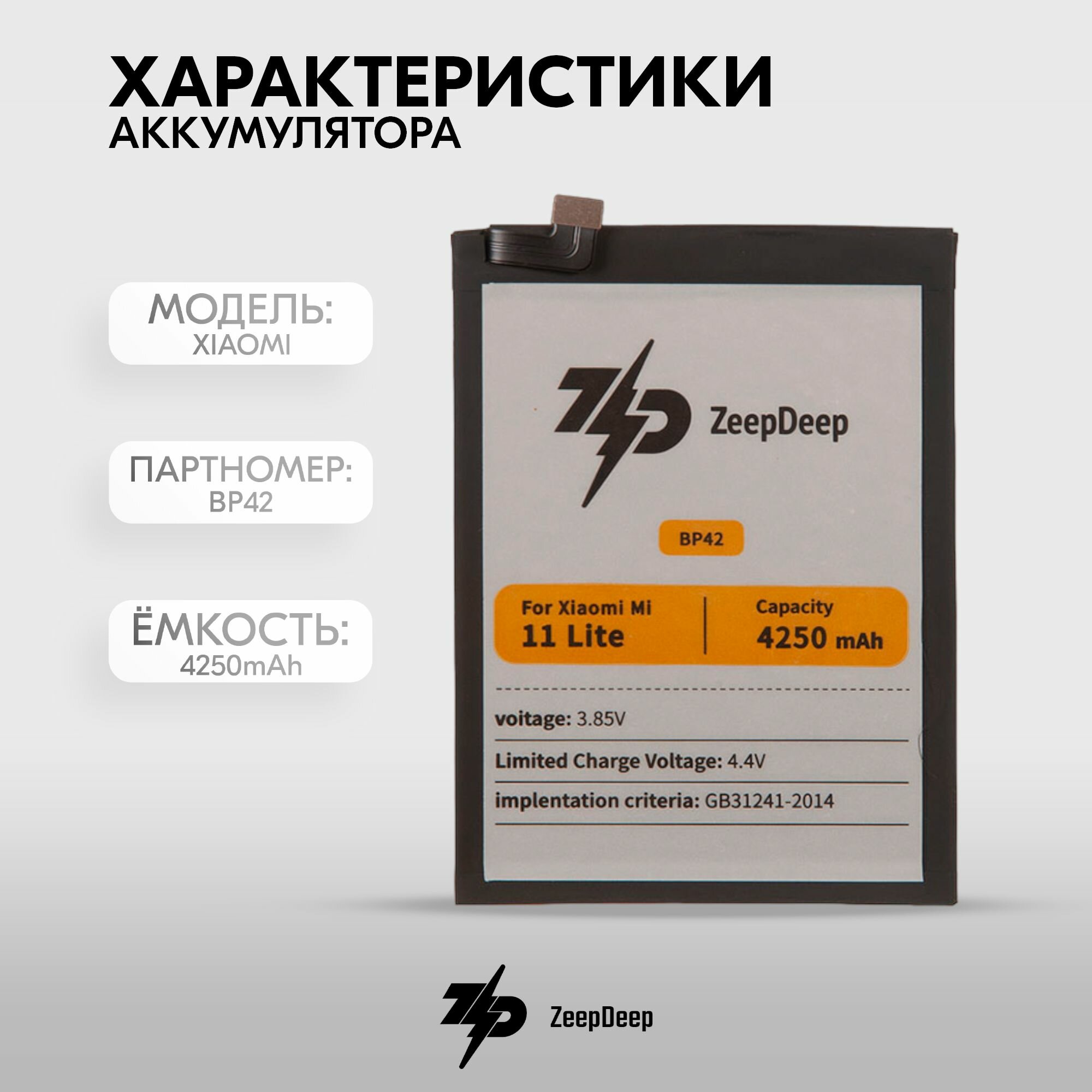 Аккумулятор (батарея) для Xiaomi Mi 11 Lite, 11 Lite 5G NE (BP42) ZeepDeep ASIA информация: