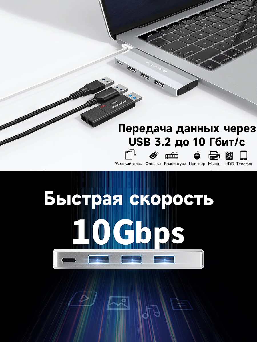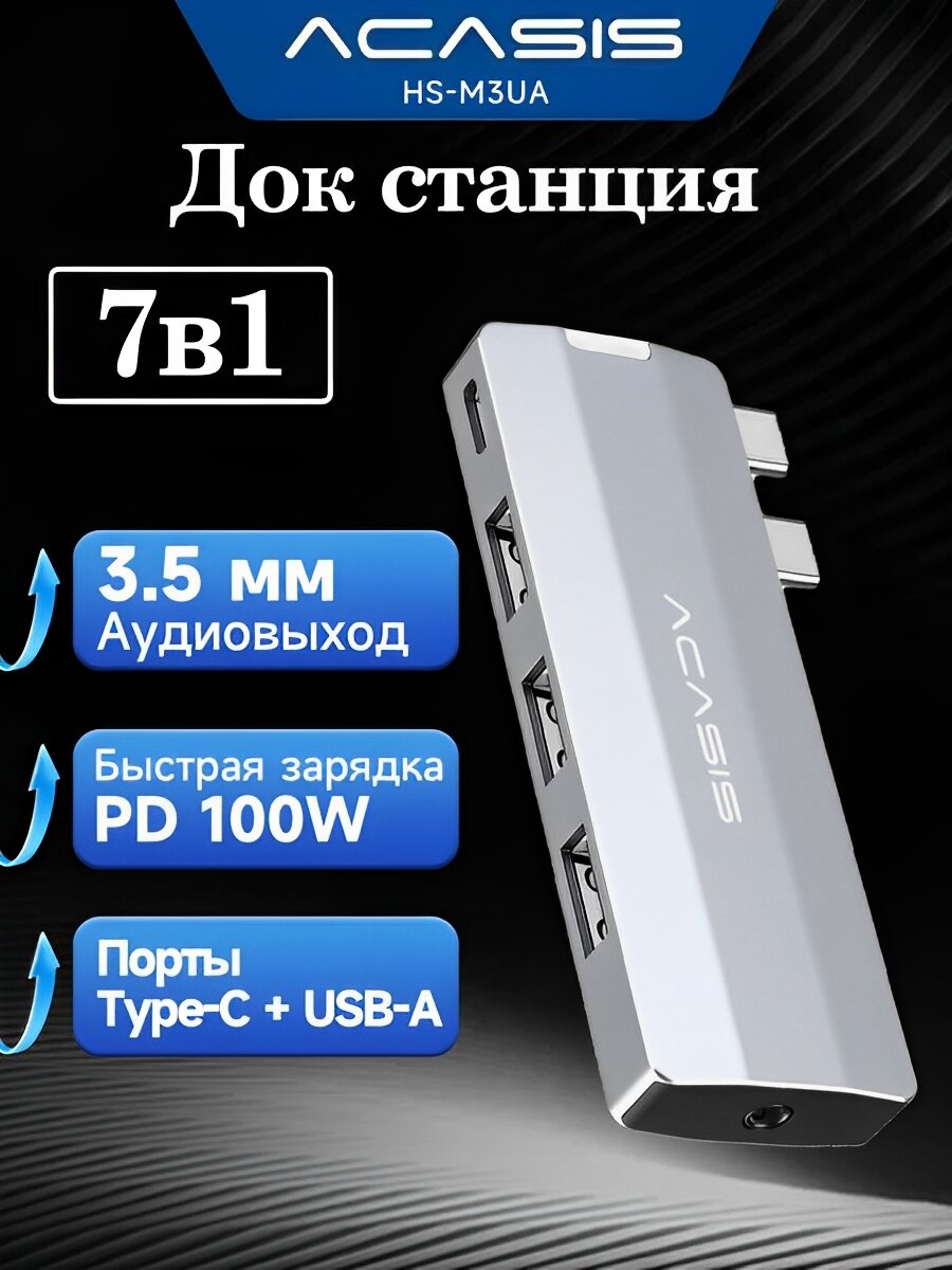 ACASIS 7-в-1 Док-станция, 10 Гбит/с многофункциональный порт Thunderbolt 3 с 3,5 мм аудио и микрофонным разъемом информация: