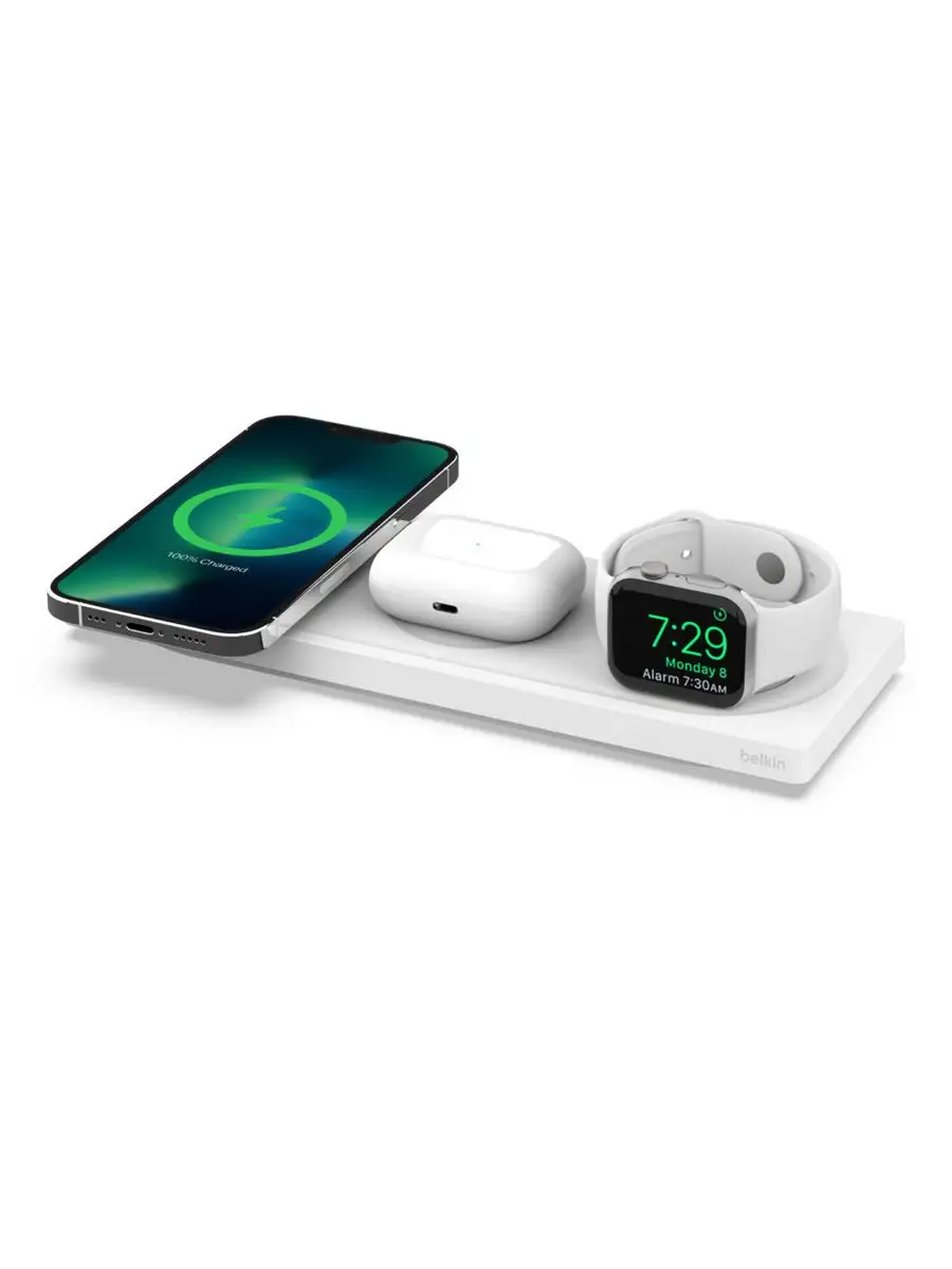 Беспроводная зарядная станция Belkin BoostCharge Pro, 3-в-1, для iPhone, AirPods, Apple Watch, 40 Вт, белая информация: