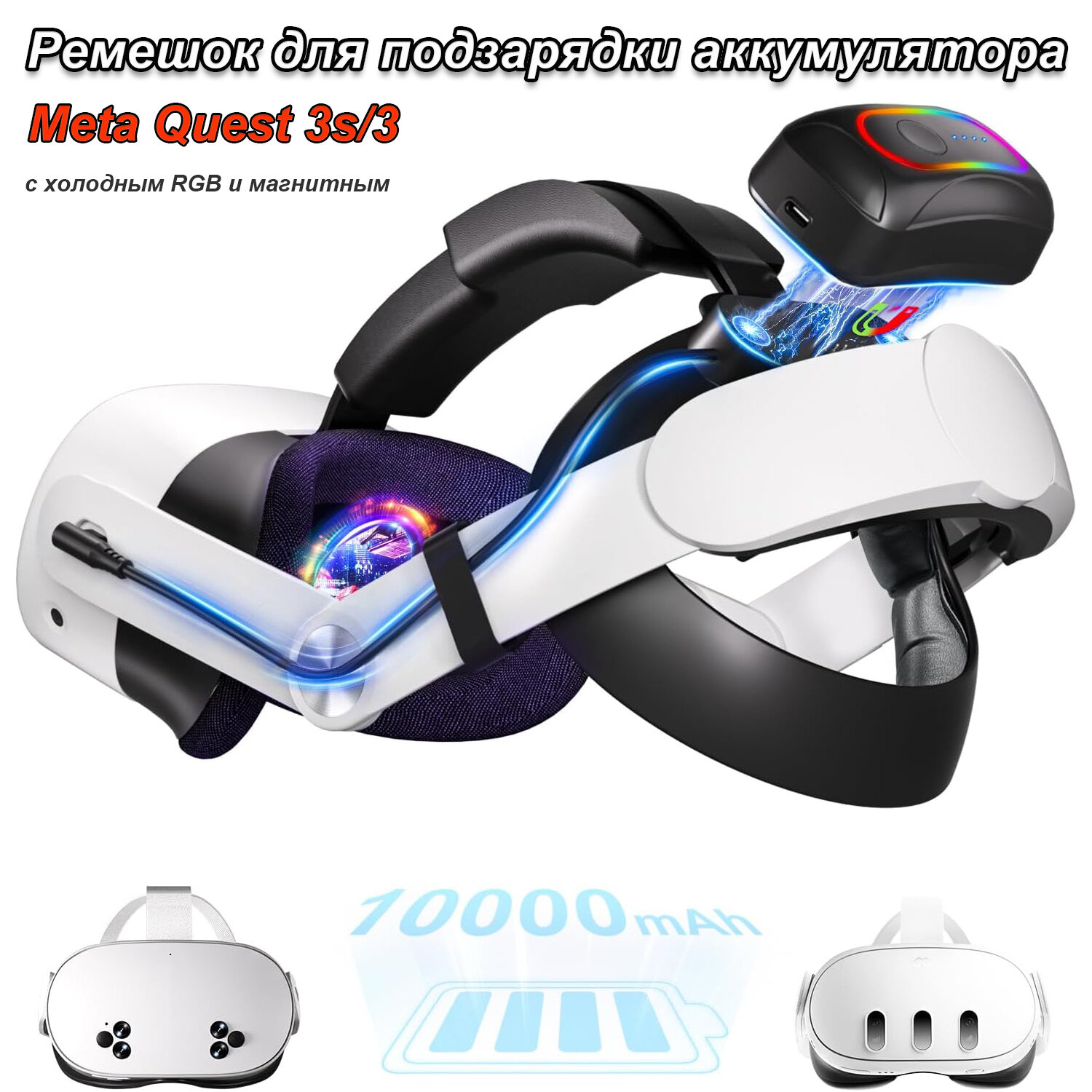 Ремешок с батареей 10000mAh для Meta Quest 3s/3, с RGB подсветкой и магнитным дизайном, удлиняет время VR информация: