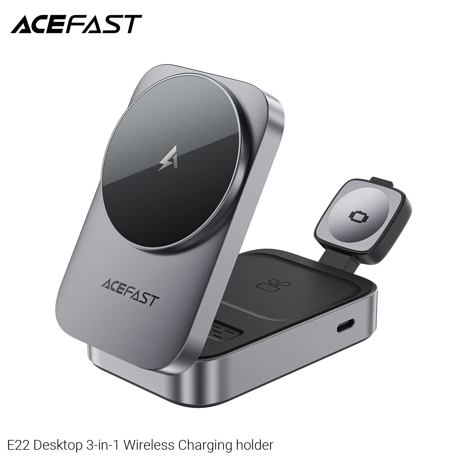 10 цен на Беспроводная зарядка для IPhone ACEFAST E22 Док станция 3в1 Графитовая