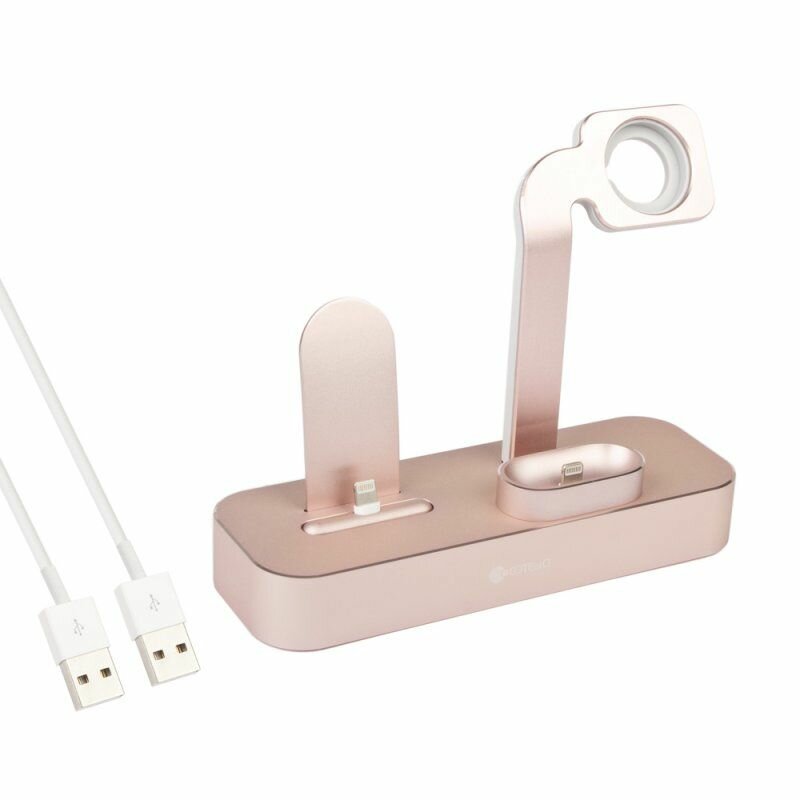 Отзывы на Зарядная станция COTEetCI Base19 3в1 для Apple iPhone, AirPods, iWatch подставка, 5Вт, Lightning 8-pin, розовый