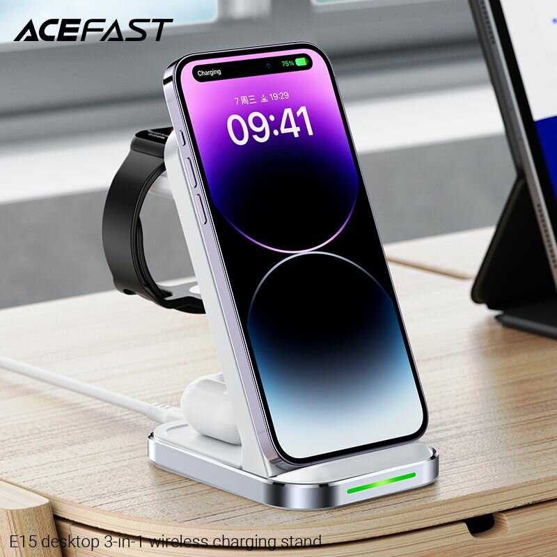 Отзывы на Беспроводная зарядка для IPhone ACEFAST E15 Док станция 3в1 Белая