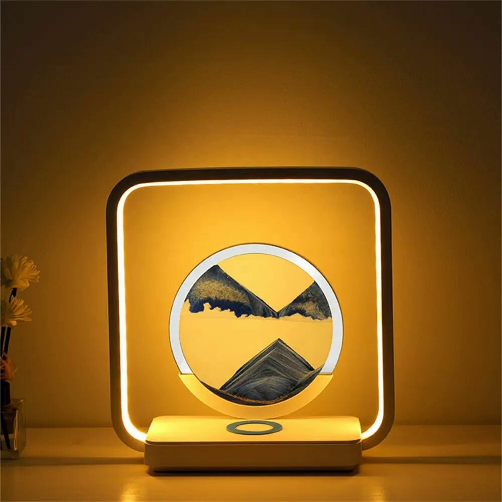 Отзывы на Беспроводная быстрая зарядка, песочная картина 3D, светильник-ночник, док станция, цвет синий