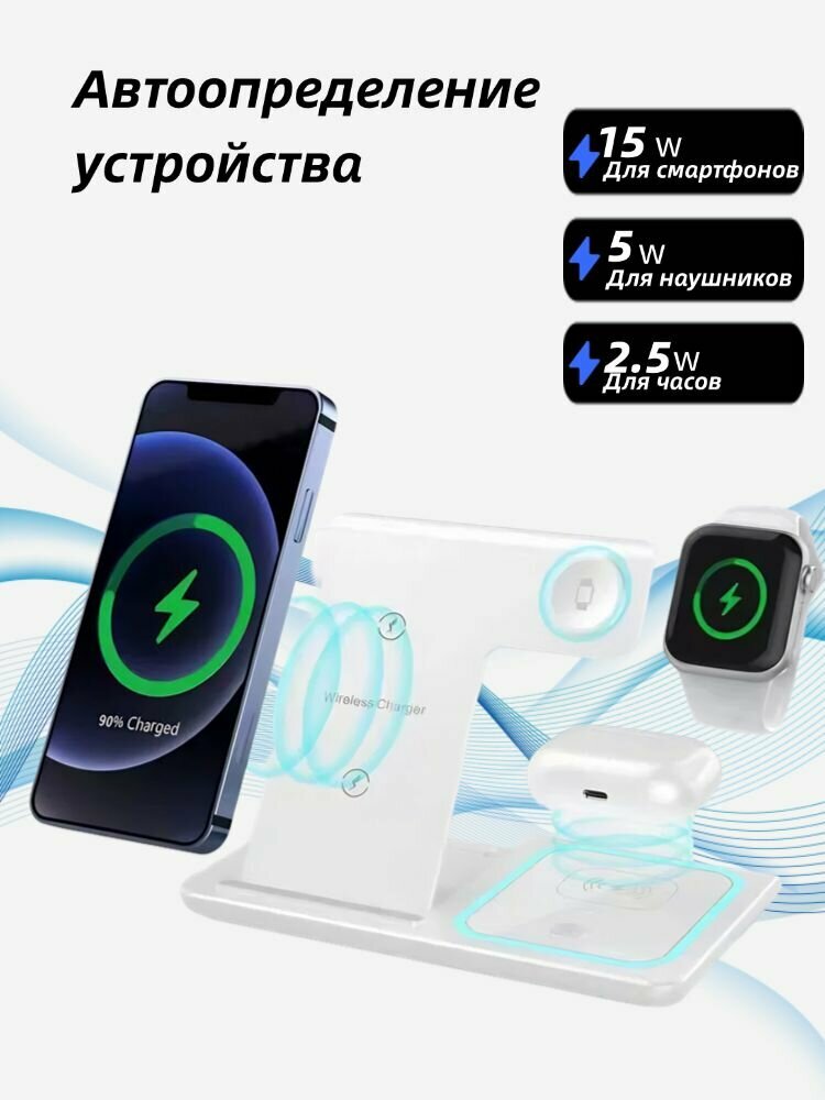 Беспроводная зарядка для Android и iphone/ Зарядная станция для Android и Apple / Док станция 3 в 1/белое информация: