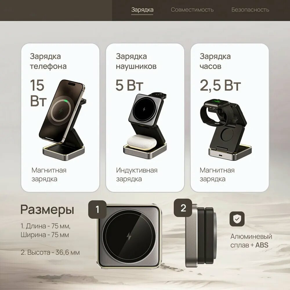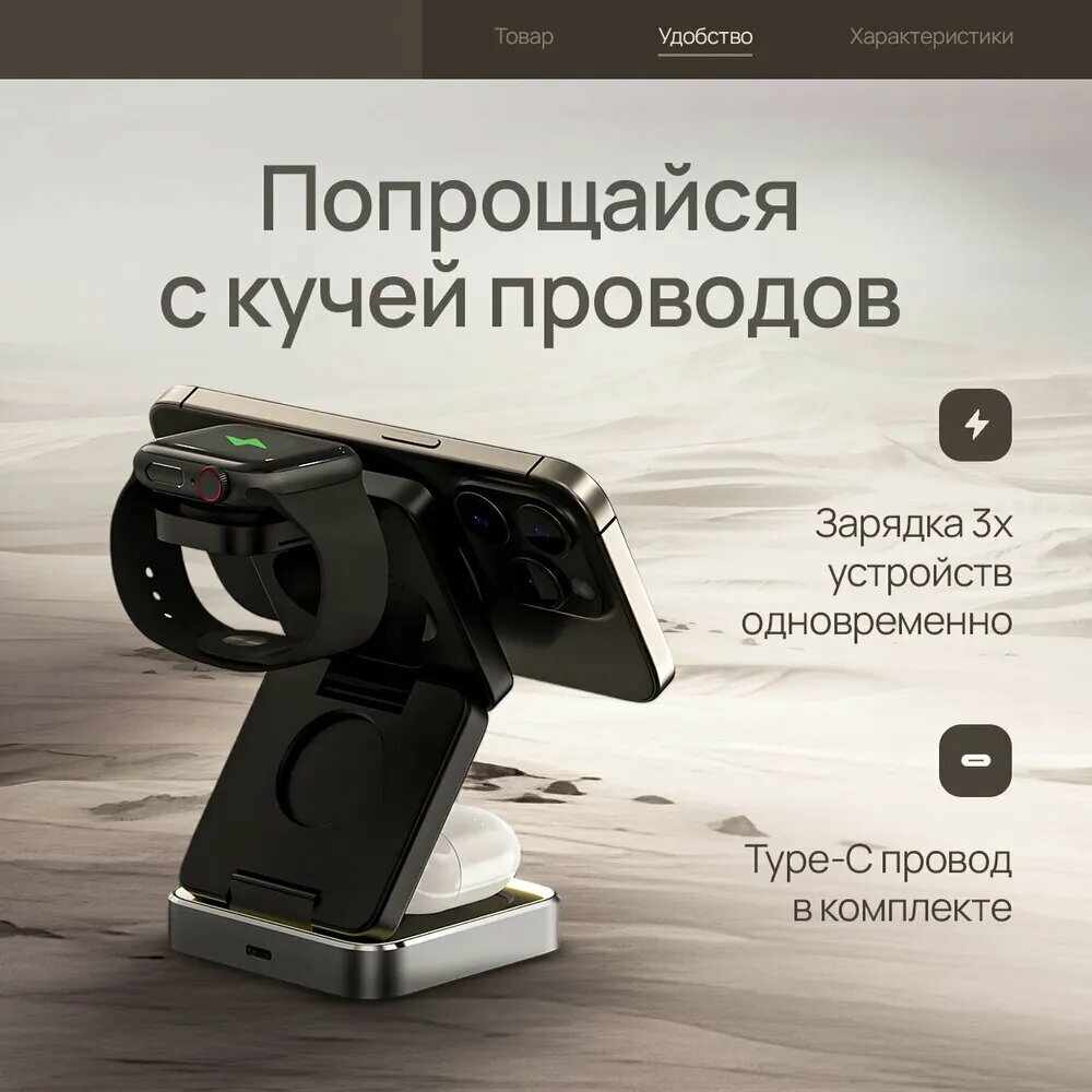 Беспроводная зарядка для iphone, док станция 3 в 1 MagSafe, зарядная станция складная для айфона информация: