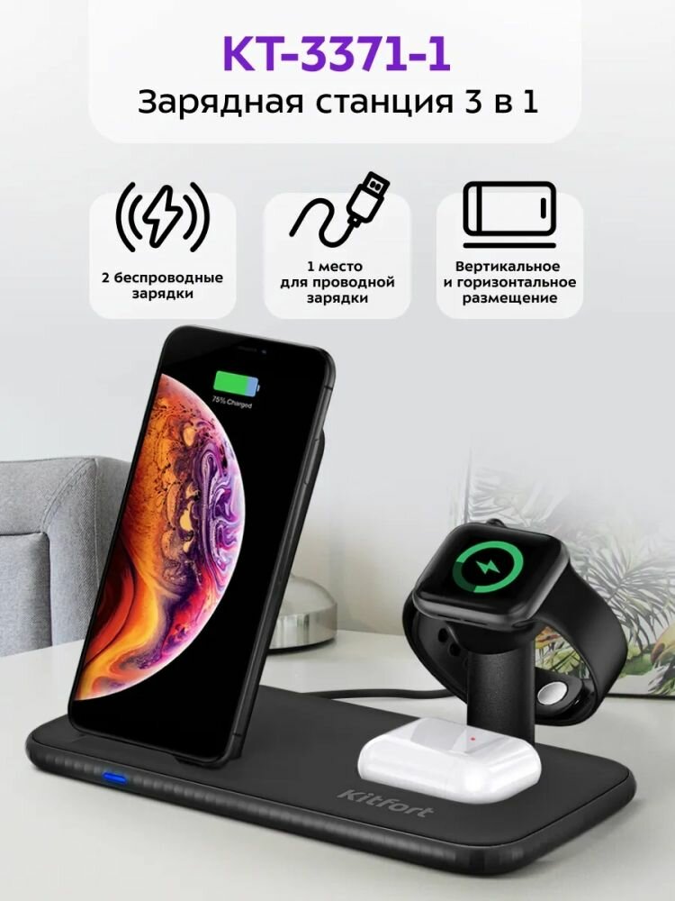 Зарядная станция Вива Грейп KT-3371, для часов, чёрная, 22,5Вт информация: