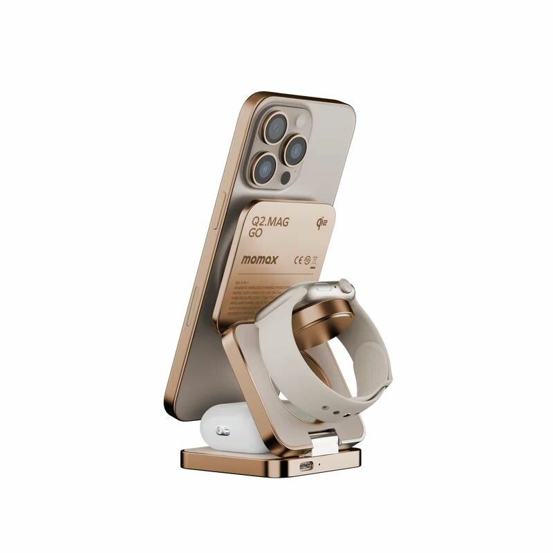 Отзывы на Беспроводная зарядная док-станция 3 в 1 Momax Q2. Mag Go Qi2, складная, магнитная - Sandstone (золотой)