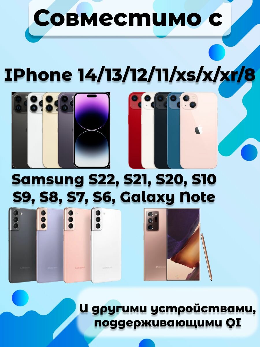 Беспроводная зарядка (док станция) для телефонов Apple Iphone, Samsung, Xiaomi информация: